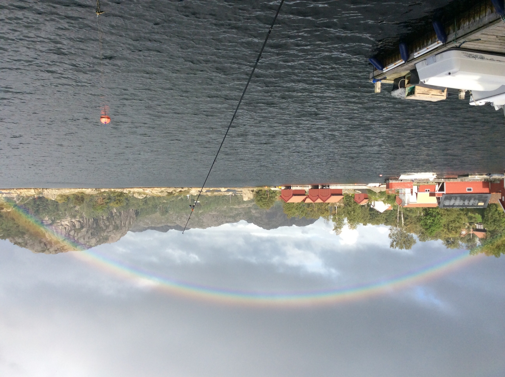 Hoddel, du musst nicht nur gucken was die Fische machen, sondern die Haken der Harpe schärfen und die Fische in dein Boot einladen. Nur vom gucken und nur von Pilzen ist noch niemand satt geworden ... Den Regenbogen hatte ich an meinem letzten Tag bei Farsund die grobe Richtung nach Skarstein gezeigt ... Er hat den Weg gefunden!