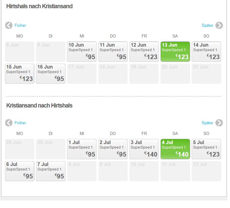 er hat ja aber im juni und juli wegen der fähre geschaut und da ist fjordline billiger (fast die hälfte). mfg pesu