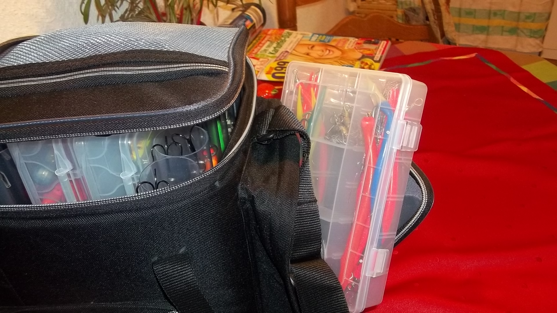 Mir ging's eher.... ob die Tasche komplett richtig zu ist, wenn die Pilkerboxen drinne sind.
