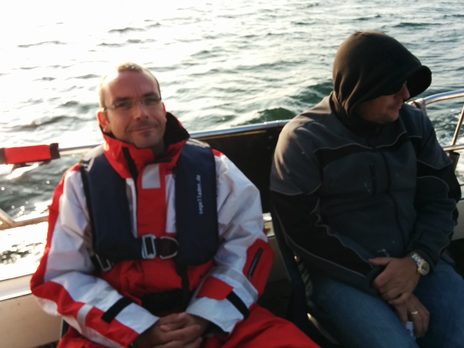 ......Mal etwas zur "Entlasung" des anderen Kutterkapitäns (der uns "abgeschossen" hat.). Bei Wind von 5-6 Bft. wirken die großen und hohen Aufbauten dieser Kutter wie Segel. Er fuhr seine Parkbucht eigentlich prima an, stoppte dann aber ohne ersichtlichen Grund auf und wurde in der Folge vom Wind völlig aus der Bahn gedrückt. Dann packte ihn wohl etwas die Panik, da er immer weiter ins Flachwasser gedrückt wurde und wohl Angst hatte, mit der Schraubenwelle aufzusetzen. Er meinte später, Vor- und Rückwärtsgang hätten nicht funktioniert.... naja *rolleyes*.....
