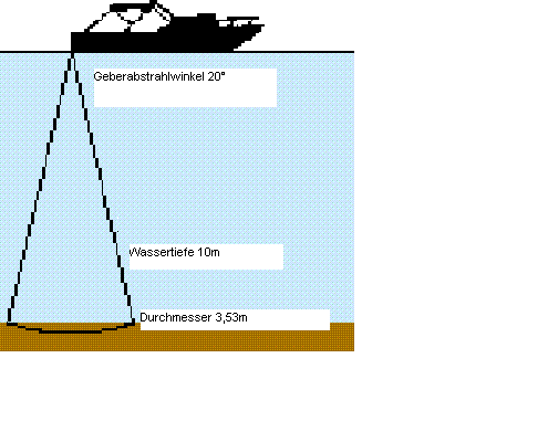 Bsp. Der Geber ist an einer Geberstange befestigt, die relativ schräg ausgerichtet ist, also aus dem Lot, der Empfänger bekommt aber noch Signale zurück, woher stammen die, von senkrecht unter dem Boot, weil es ist ja ein Echolot?