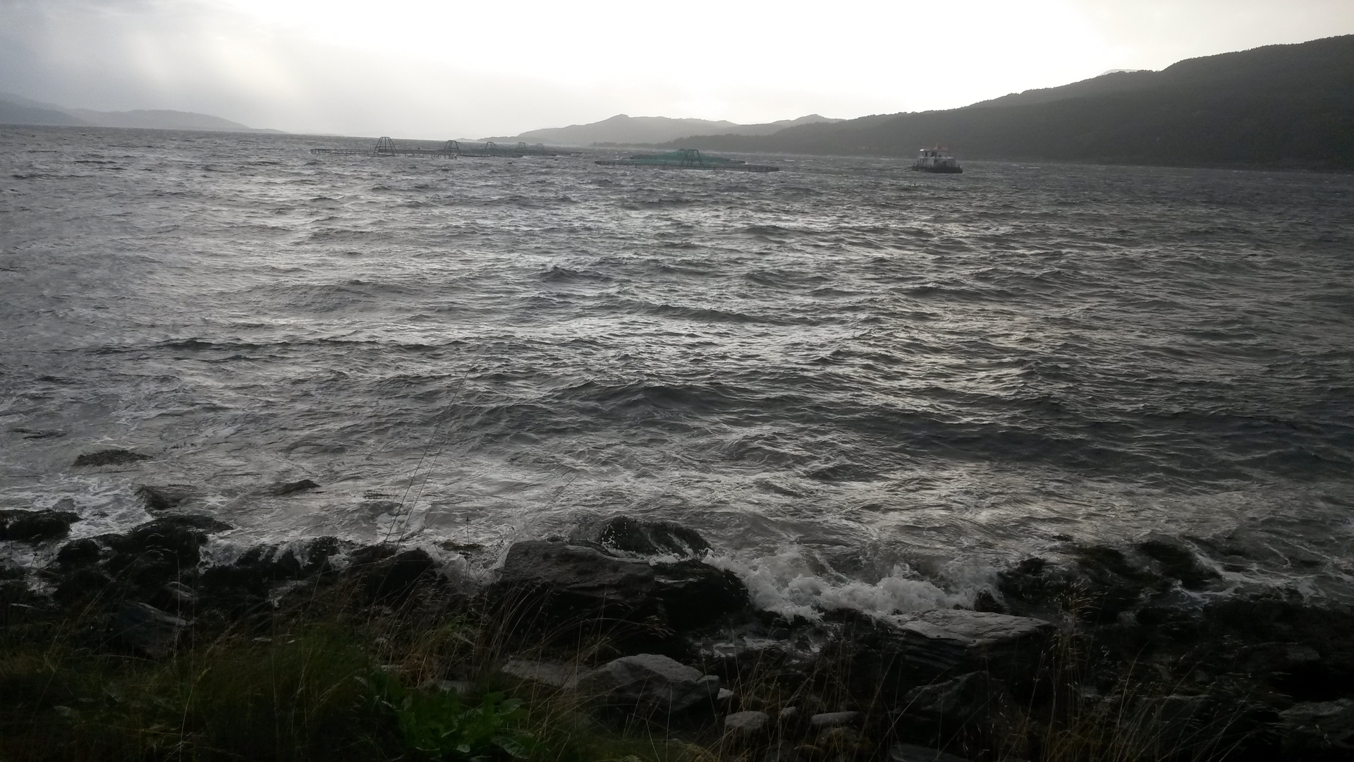 Nachmittags stürmt es heftiger als vormittags, die Wellen sind größer. So haben wir es in einem Fjord noch nie gesehen. Ist aber ein schönes Schauspiel!!