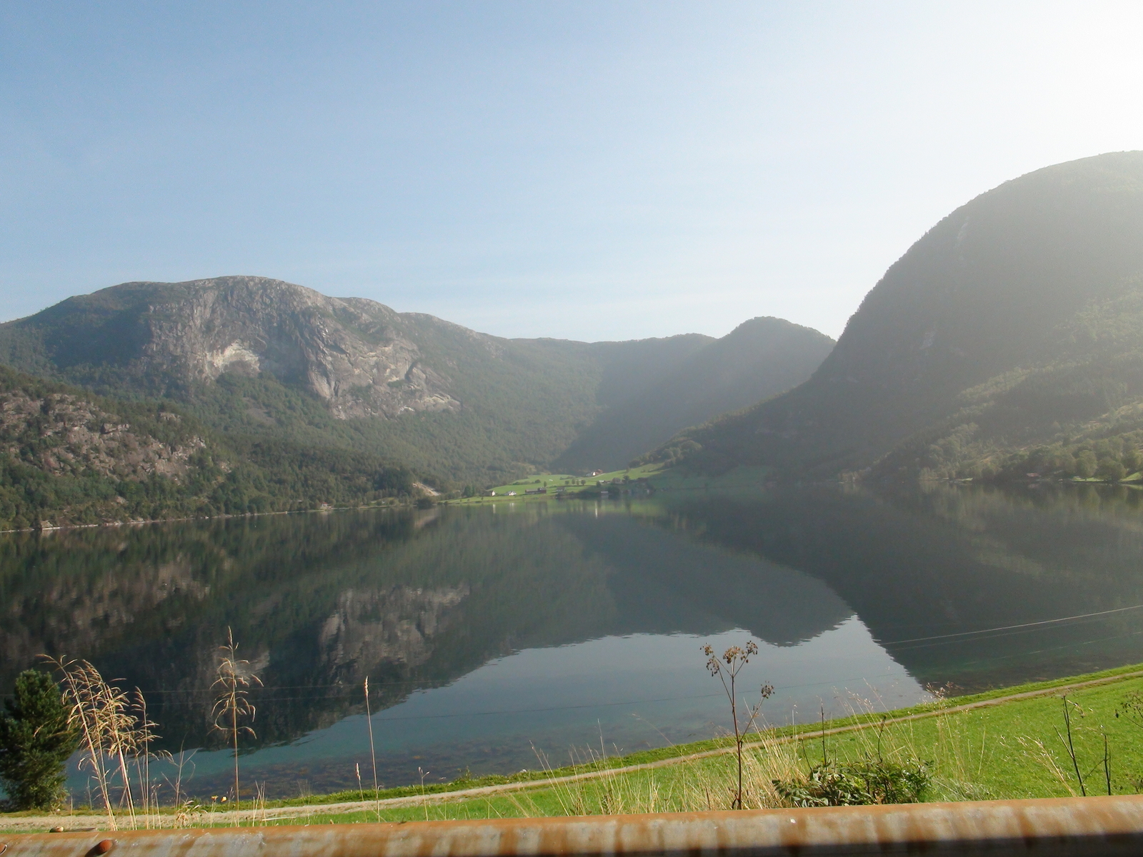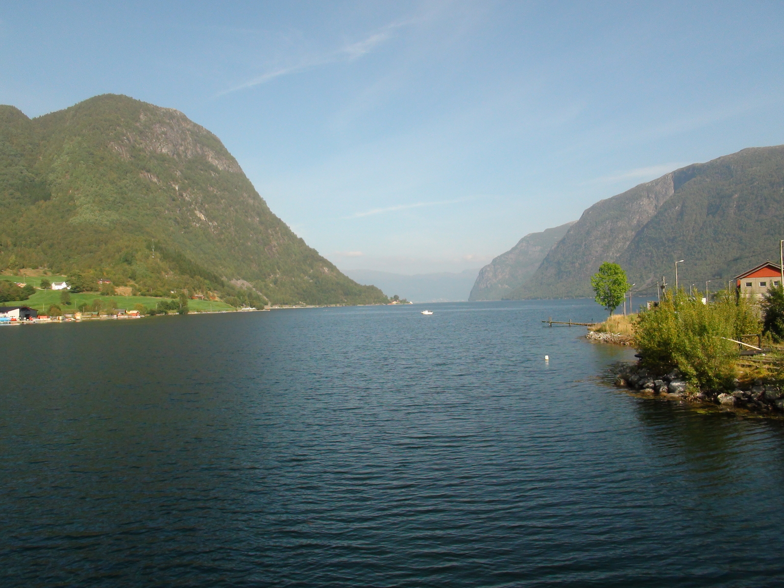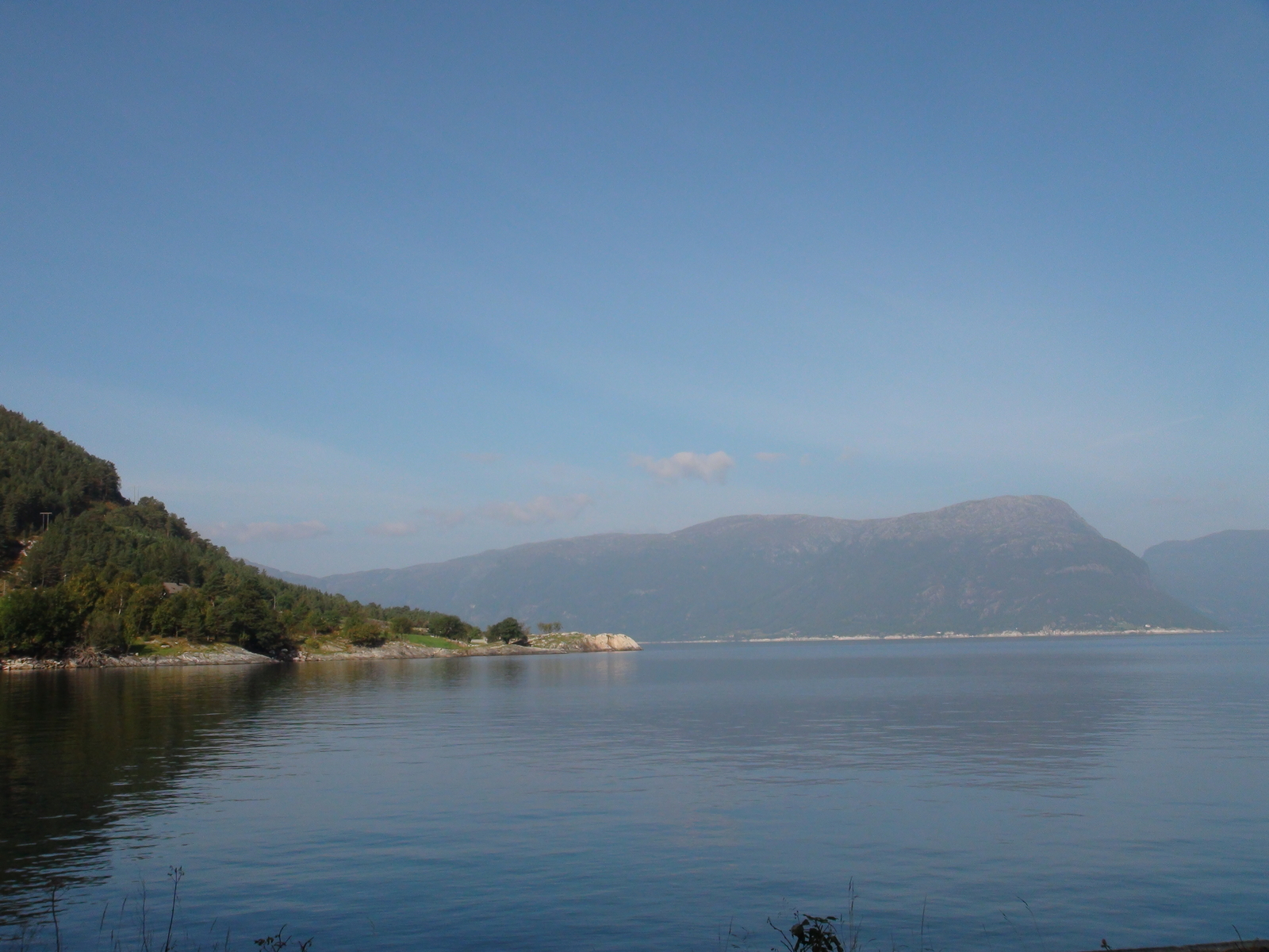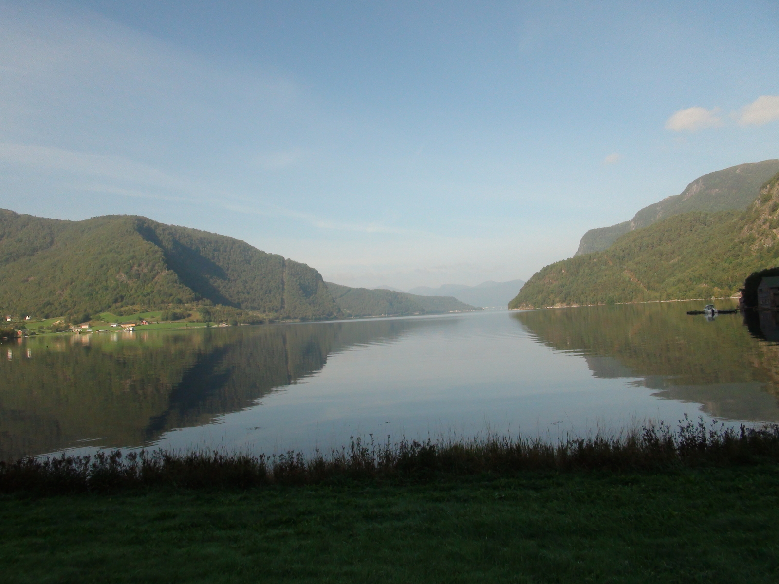 Gegen 10:30 Uhr nehmen wir die Fähre von Lavik nach Oppedal. Wir zahlten diesmal 120NOK. Diesmal wollten wir auf der anderen Fjordseite bis Ortnevik fahren. Wir sind in den Ikjefjord gefahren, wo 3 Boote angelten. Man kommt dort zwar nicht sehr weit, doch liegt dieser kleine Ikjefjord sehr schön. Als wir von dort wieder zurückfahren wollen, kamen uns aus einem Grundstück 2 Hunde entgegen gelaufen. Ein kleinerer Hund und eine Art Schlittenhund (glaub ich), der noch total verschlafen aussah. Erst schauten die beiden zur Fahrerseite hinein, dann kamen sie zur Beifahrerseite, dann schlichen sie hinters Auto und wir fuhren langsam weiter. Nur sahen wir im Rückspiegel, dass sie uns langsam auf der Straße nachtrotteten.