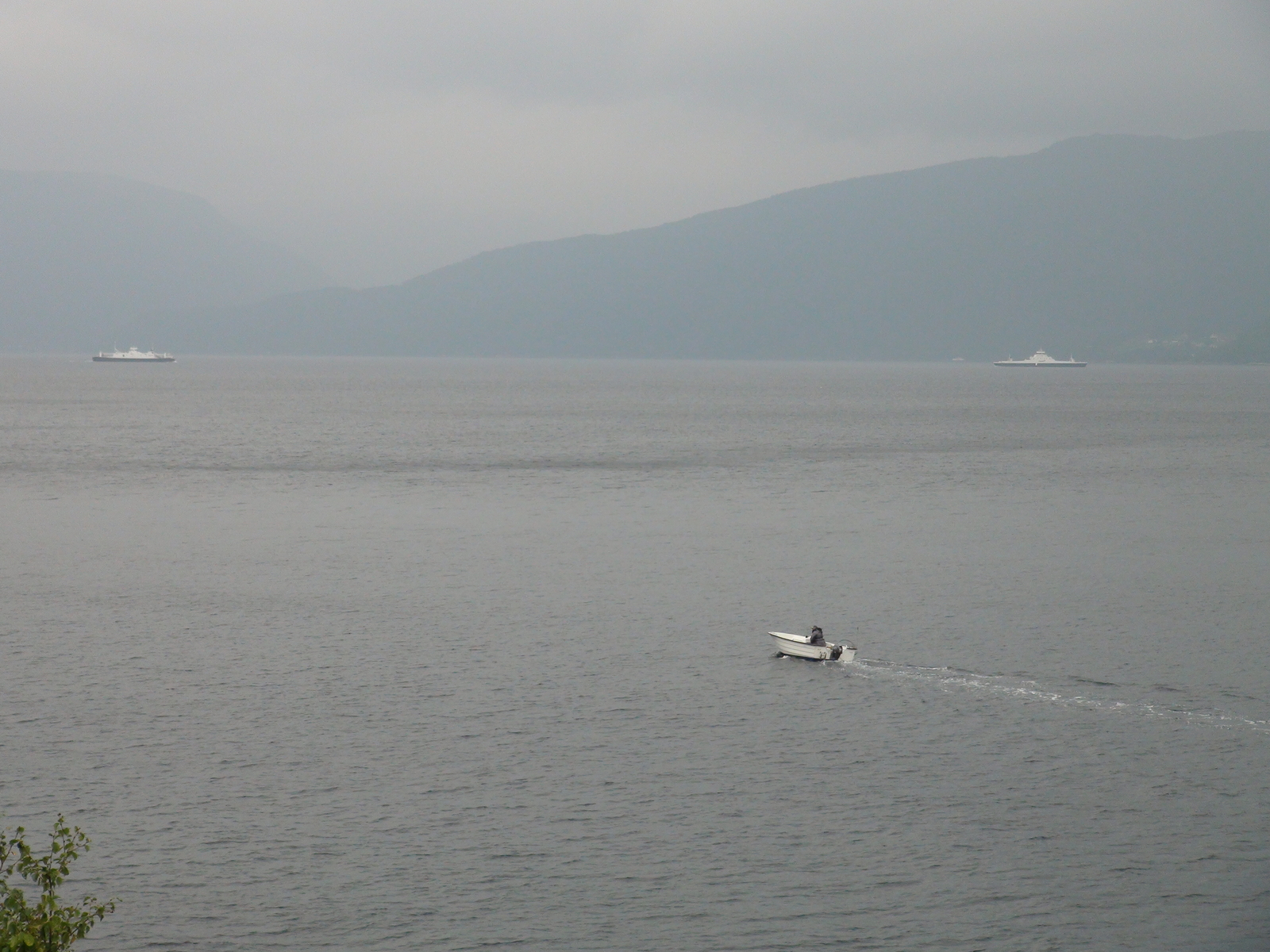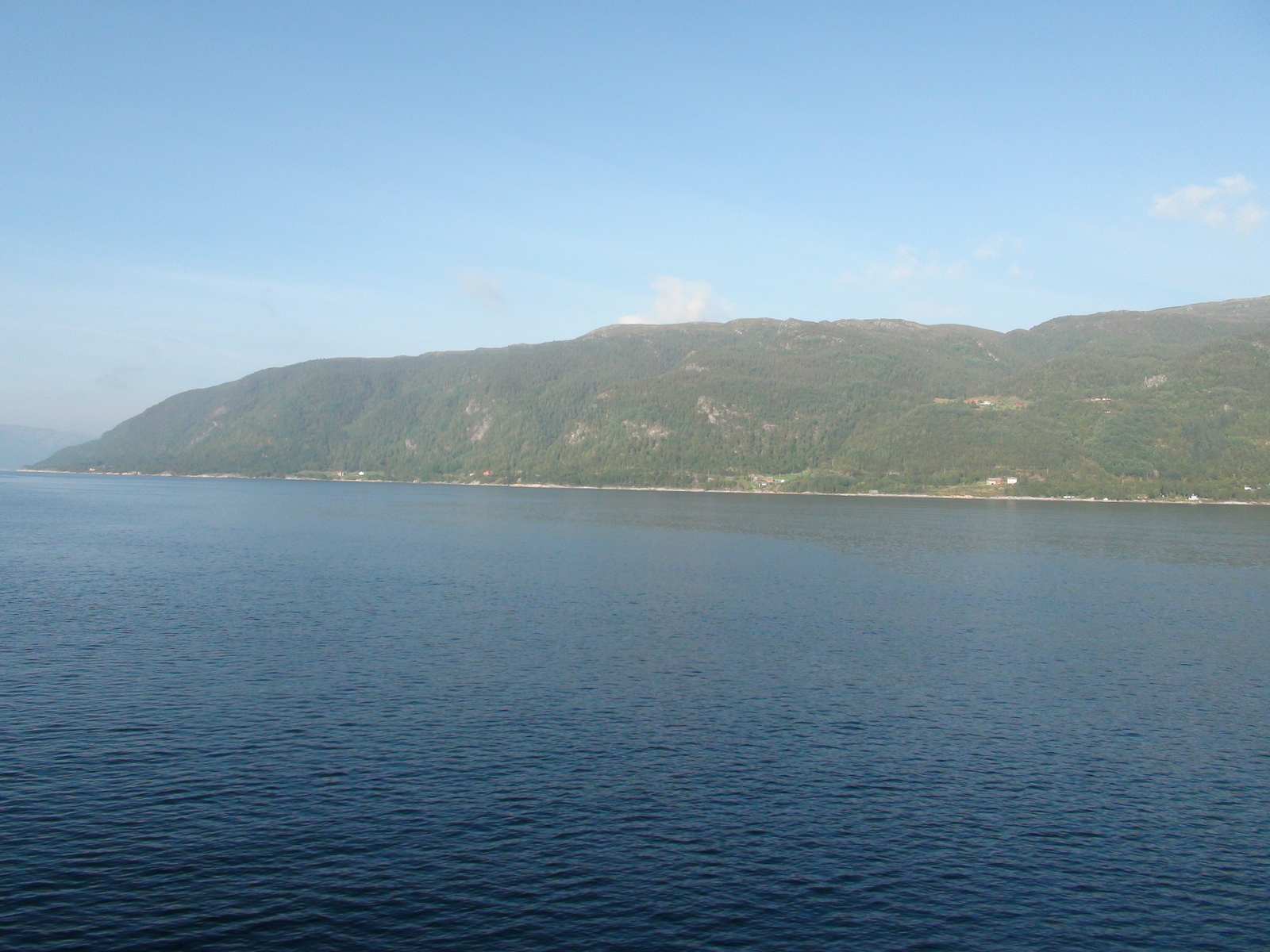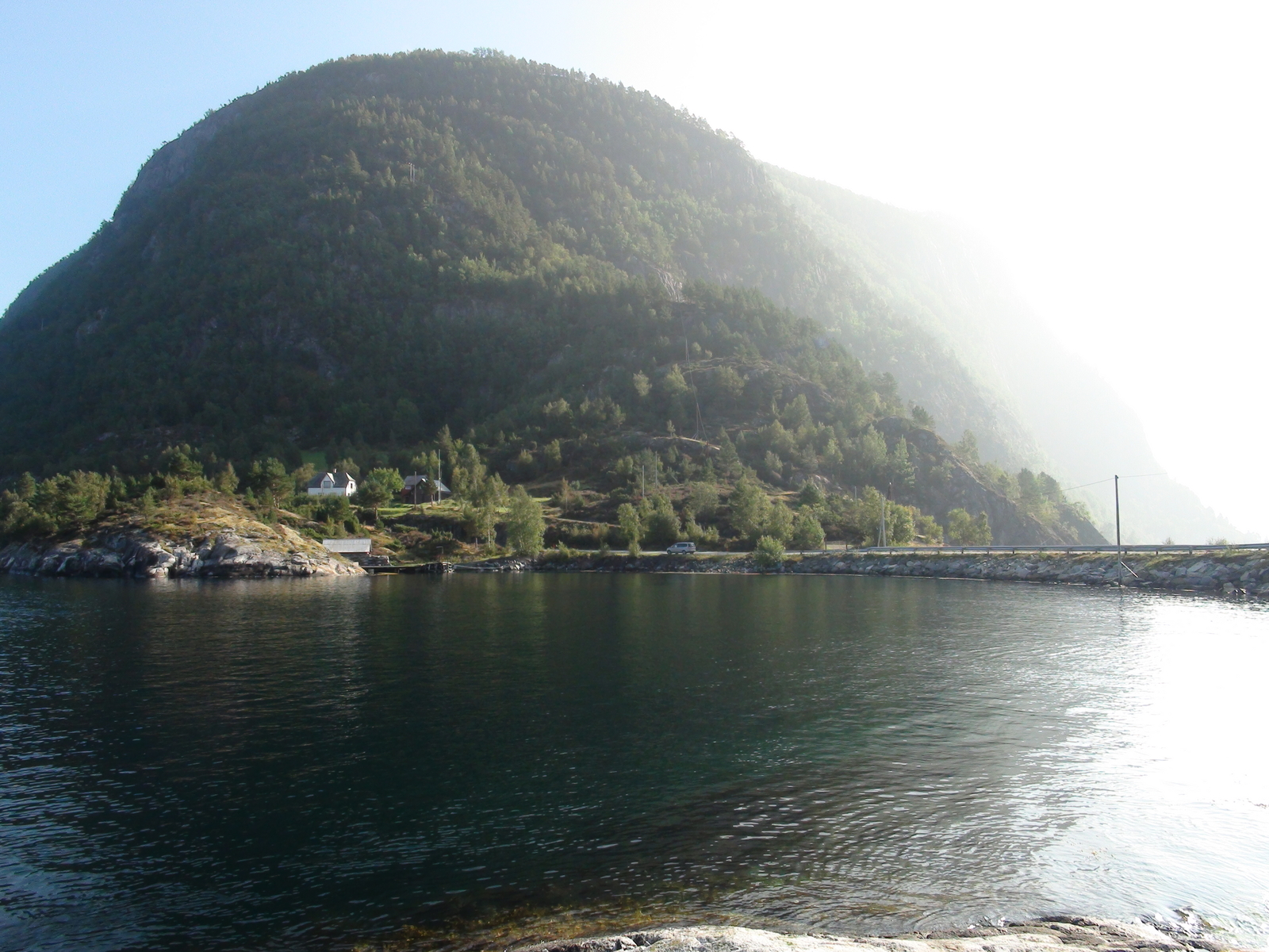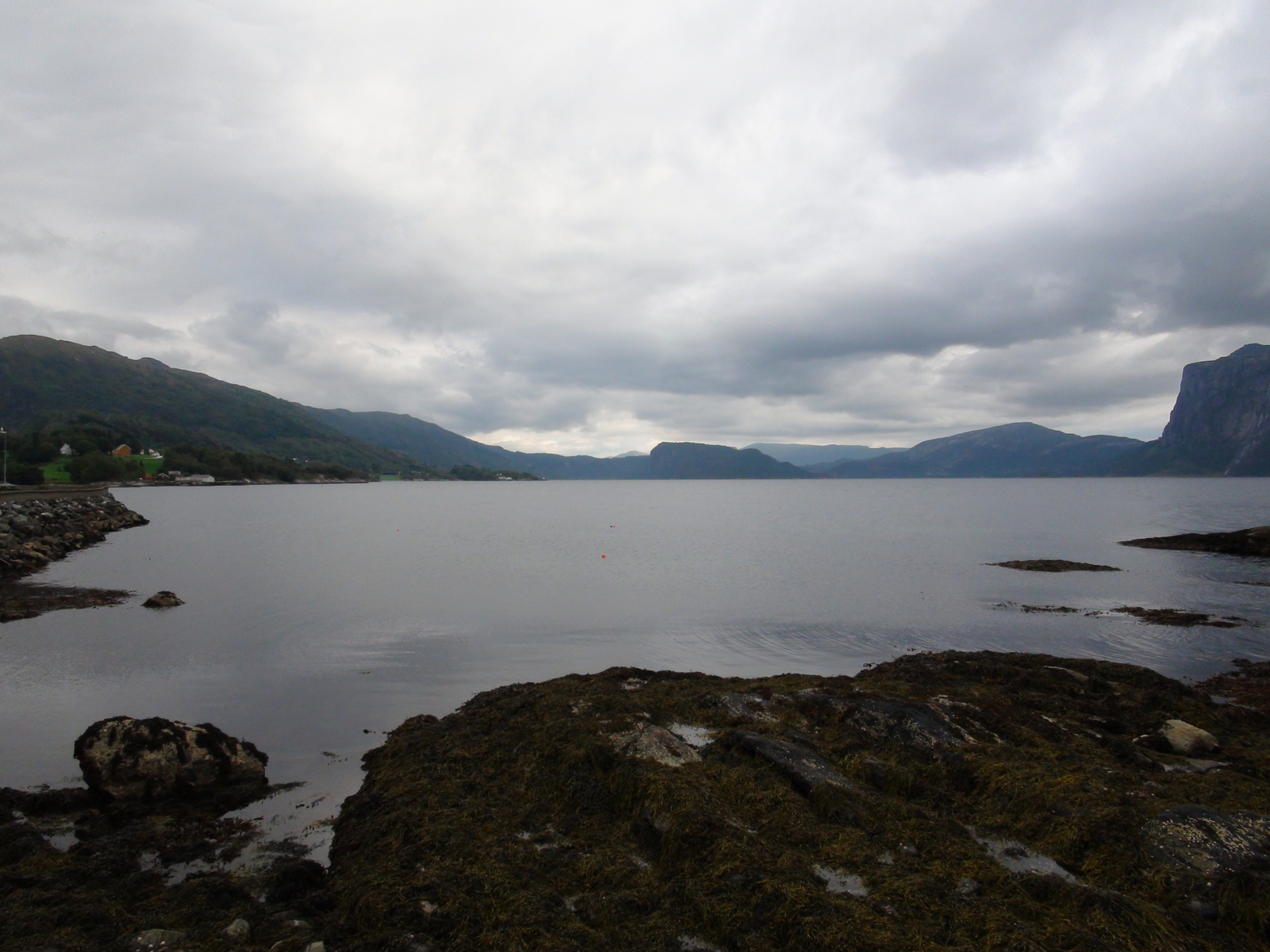 Gegen 10:30 Uhr nehmen wir die Fähre von Lavik nach Oppedal. Wir zahlten diesmal 120NOK. Diesmal wollten wir auf der anderen Fjordseite bis Ortnevik fahren. Wir sind in den Ikjefjord gefahren, wo 3 Boote angelten. Man kommt dort zwar nicht sehr weit, doch liegt dieser kleine Ikjefjord sehr schön. Als wir von dort wieder zurückfahren wollen, kamen uns aus einem Grundstück 2 Hunde entgegen gelaufen. Ein kleinerer Hund und eine Art Schlittenhund (glaub ich), der noch total verschlafen aussah. Erst schauten die beiden zur Fahrerseite hinein, dann kamen sie zur Beifahrerseite, dann schlichen sie hinters Auto und wir fuhren langsam weiter. Nur sahen wir im Rückspiegel, dass sie uns langsam auf der Straße nachtrotteten.
