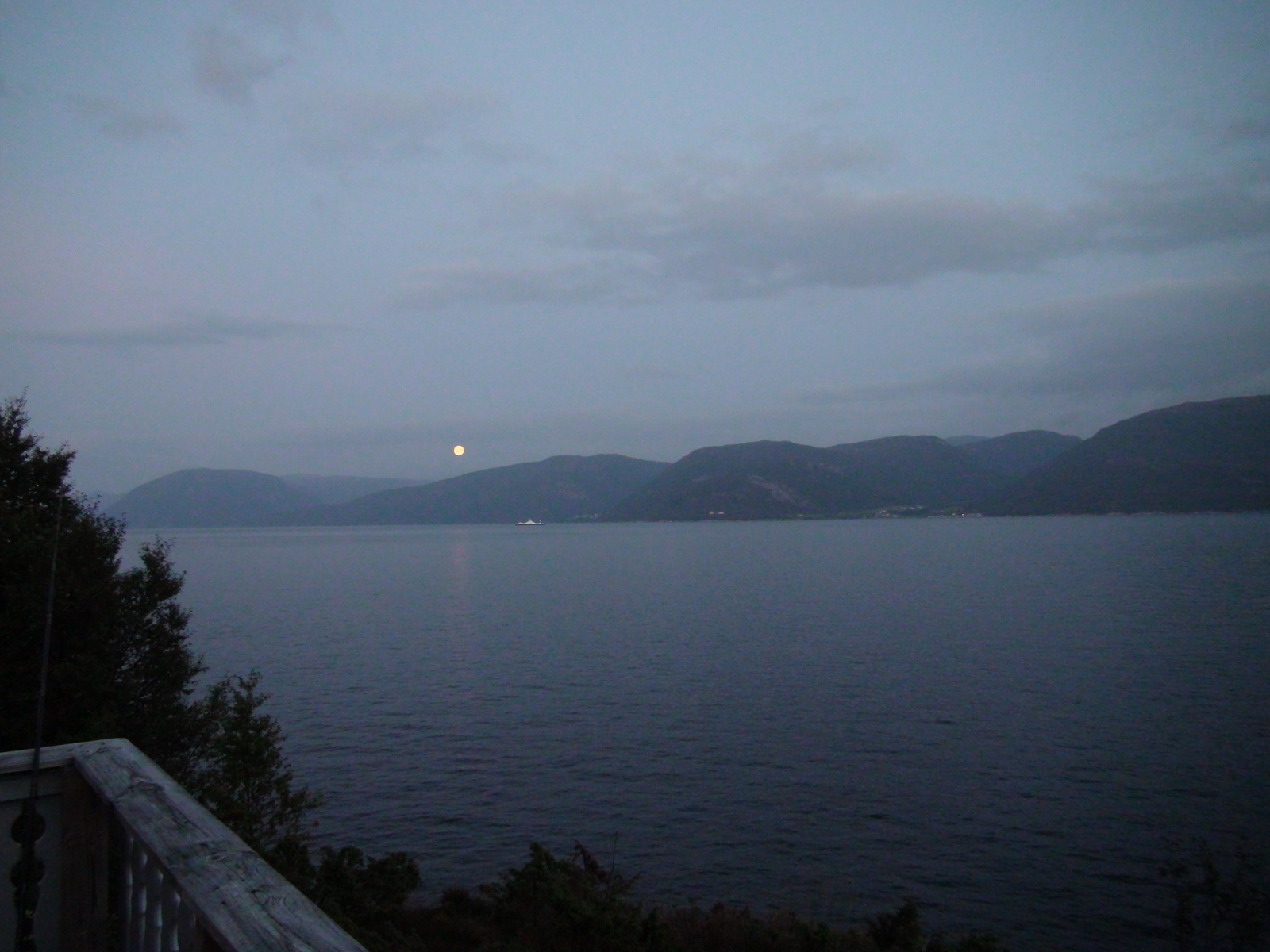 Der Vollmond scheint wieder über den Fjord und sein Mondlicht glänzt im Wasser. Wir sitzen wieder lange draußen, bei 10°C, aber es ist nicht kalt! Wir genießen die Ruhe und sind vom Mond fasziniert. Ein Baggerschiff und ein Fischerboot fuhren im Mondlicht vorbei. Danach hörten wir wieder das Prusten der Schweinswale und sahen sie dann auch im Mondschein vorbeiziehen.