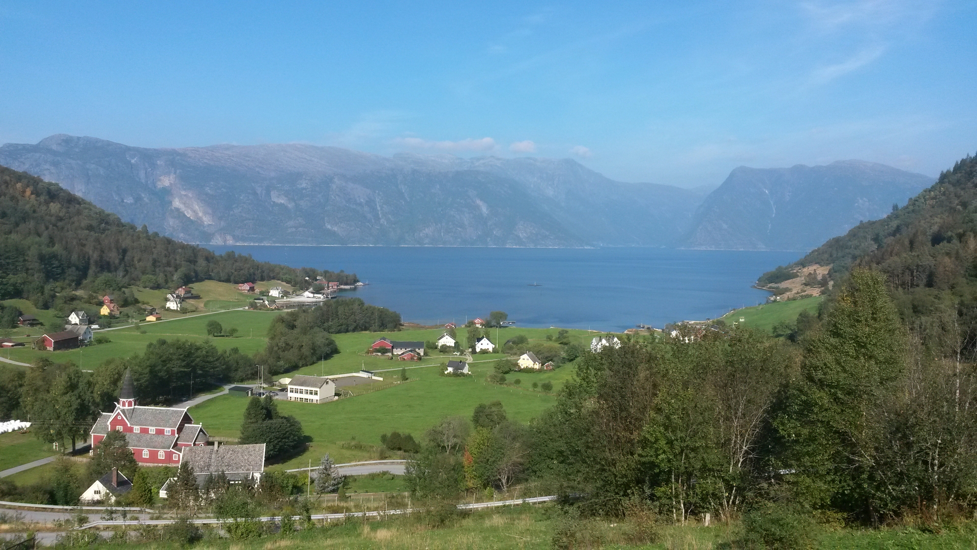 In Ortnevik gibt es schmucke Kirche. Wir sind die Straße weiter hochgefahren und auf einer Bank, hoch oben, haben wir einfach Halt gemacht, uns hingesetzt und den Blick über Ortnevik und den Sognefjord schweifen lassen. Man könnte dort ewig sitzen bleiben!