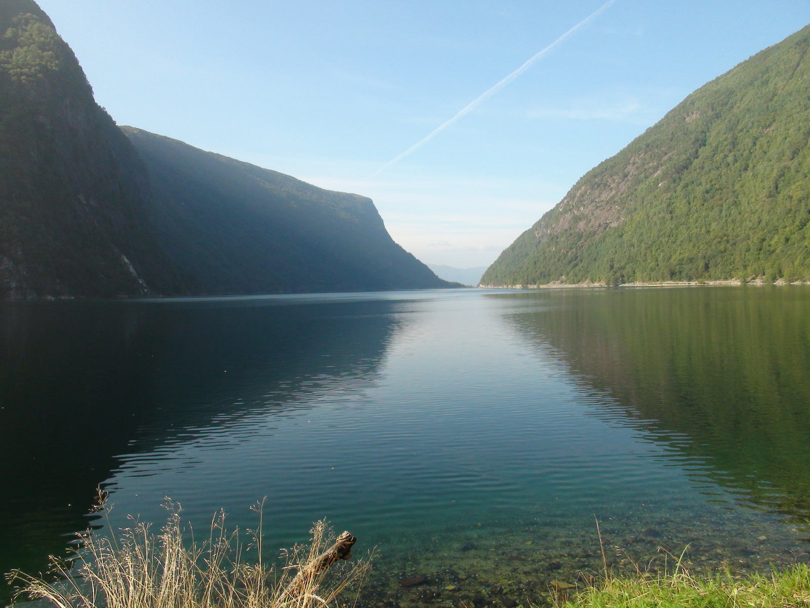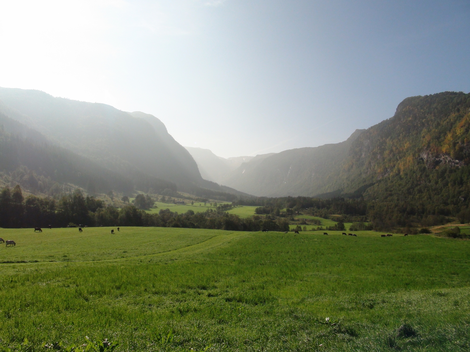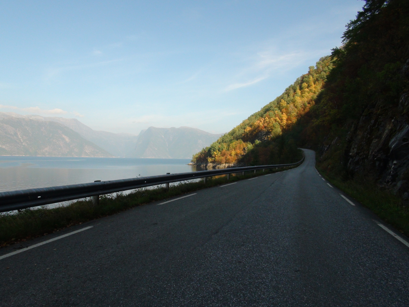 Auf dem Rückweg sind wir in Søreide nach Sørebø abgebogen. Es ging immer am Wasser , eine schmale Straße entlang. Dafür waren die Felswände wieder ziemlich hoch.