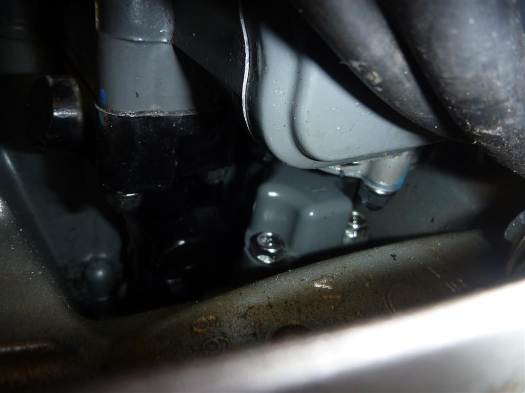 Am motorblock sieht man jetzt 1x das schwarze rohr (das ist den auspuff vom block, der im schaft geht), 1x das wasserrohr, und der anschluß zum überdrück-auspuff.