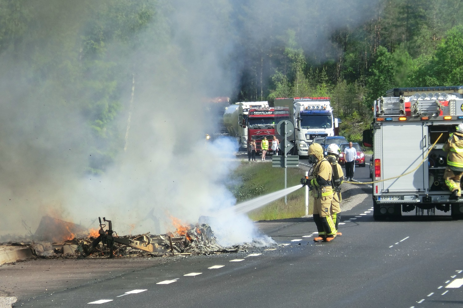der klägliche rest eine wohnwagens glücklicherweise wurde niemand verletzt. der rolfe fing auch gleich an, mit der, der verkehrslenkung betrauten feuerwehrfrau an zu flirten...........good job...........nice firefighter............blablabla