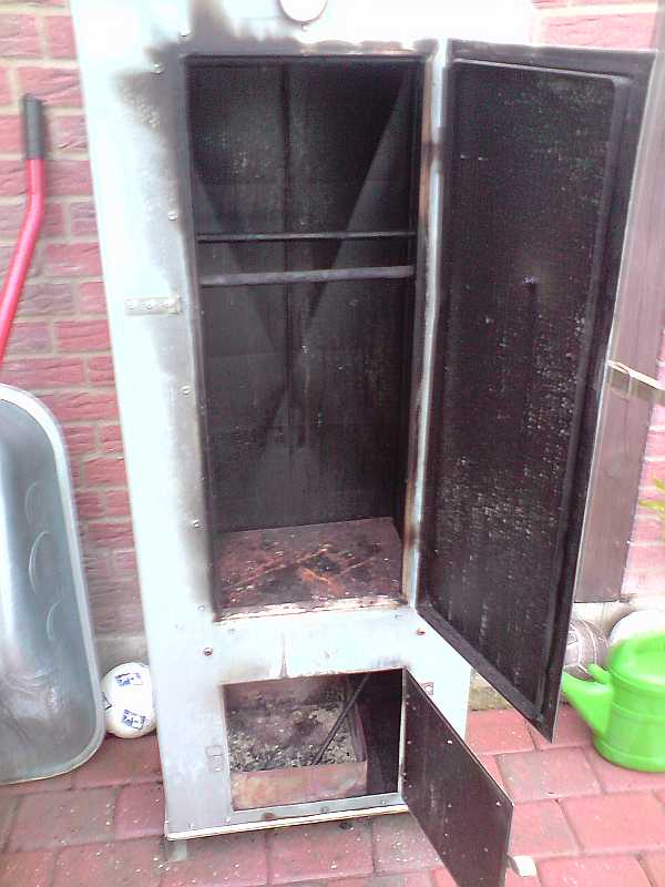 Hab zwar gerade nicht so schöne Fischlein drin hängen wie Franz, aber hier könnt ihr mal meinen Räucherofen sehen.