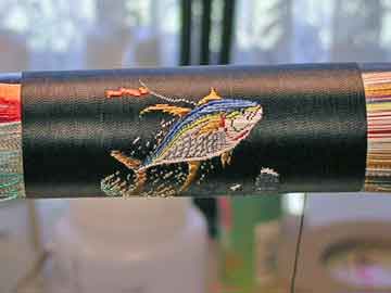 Auch der Drachen auf dem Cover des Buches "A Guide to threadweaving for the custom Rodbuilder" ist nur mit Garn gewebt*eek*:klatsch::baby: