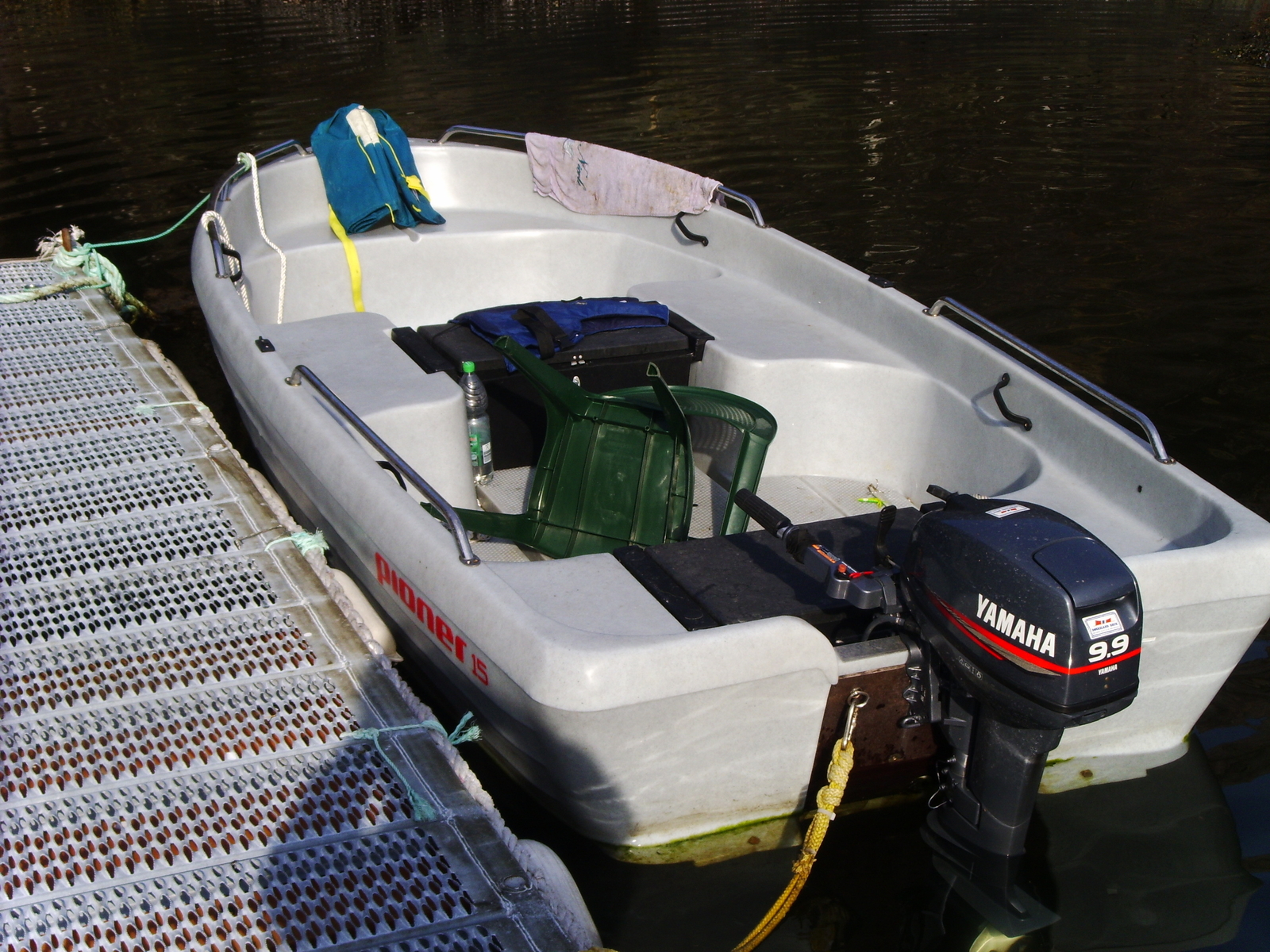 Wenn einer der zwei Mietparteien ein Zusatzboot bestellt, kommt noch ein 15-Fuss-Pioner-Boot mit 9,9 PS dazu. Recht schnelles Teil für die Motorengröße, nicht schlecht.