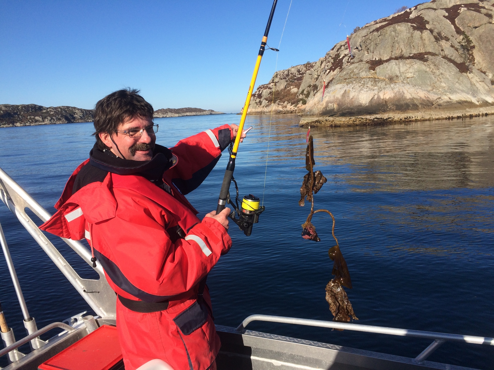 Der Wind blies ganz ordentlich von Südwest, wir versuchten unterhalb vom Flughafen Stord, ganz dicht unter Land, mit Naturköder auf Leng zu gehen, leider ohne Erfolg.