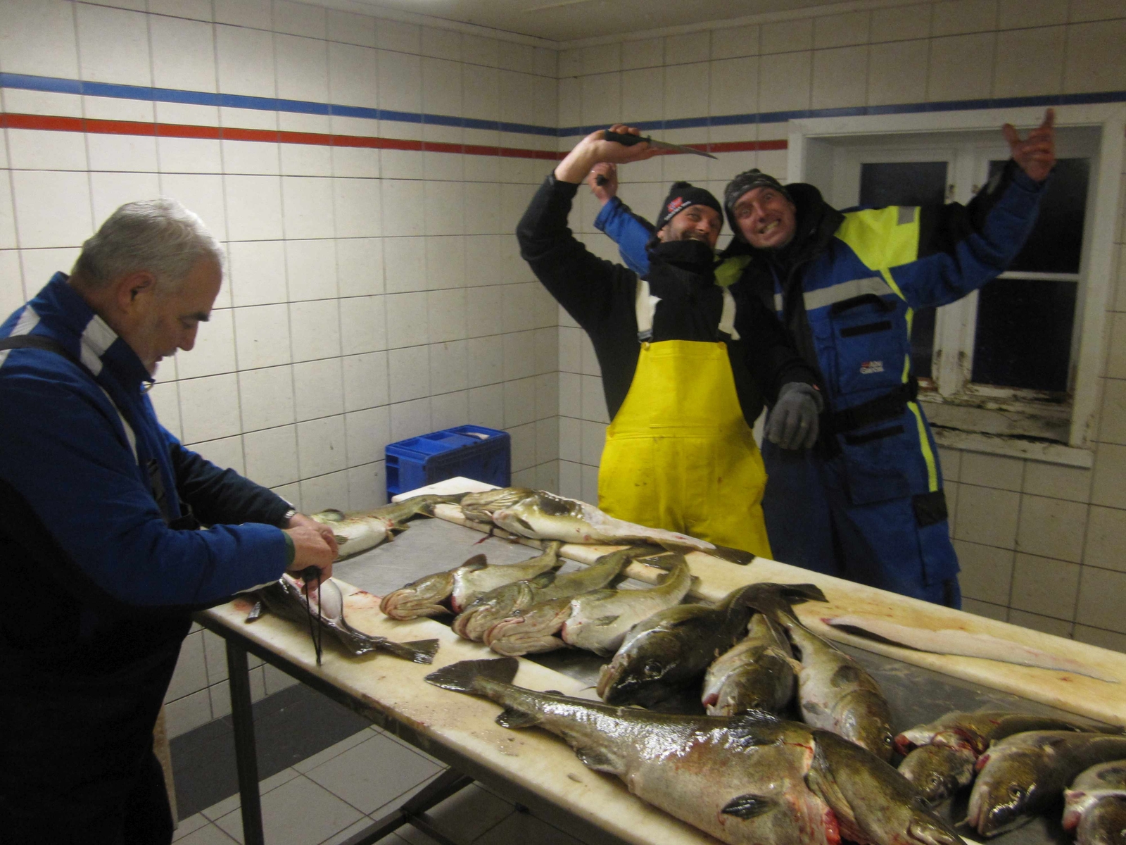 Im Filettierhaus war am Abend wieder Gemeinschaftsarbeit angesagt. Nach den Tagen weiß jeder wo sein Platz ist und es läuft wie in einer professionellen Fischfabrik.