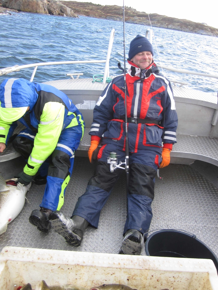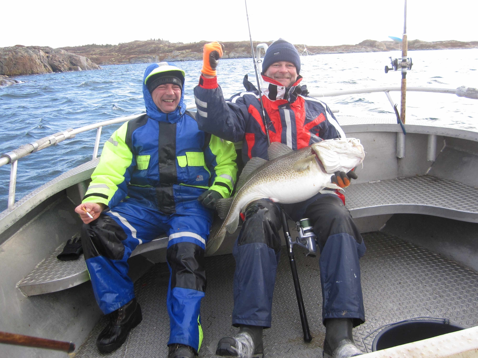 Zum Mittag lagen bereits 80kg Dorsch auf der Wage. Der Fang wurde versorgt und jeder Stand zu 14:00 in den Booten.Der Micha ging zu Martin rüber. Nun ging es als Vater und Sohn raus zum Fisch. Die Mischung stimmte. Zusammen mit Jens, Könich und Hendrik landeten sie einige gute Dorsche und Seelachse von 60-70cm.....wir waren auf Kurs.