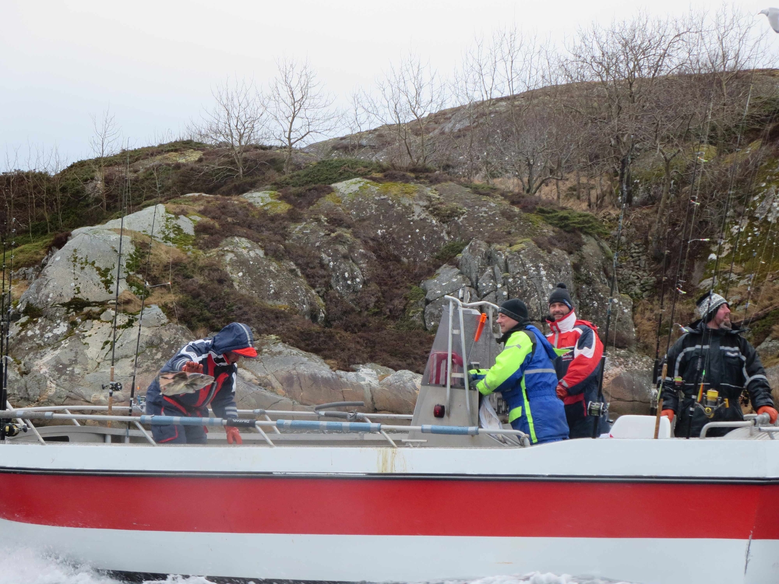 Das Wetter war gestern wie es sein sollte für Angler die im Februar/März nach Norwegen fahren. Wir hatten Wind von 6-7m/s, Regen und Schnee.Doch alle 16 Mann waren super motiviert und kämpften bis 18:00 die Quote zu erreichen.