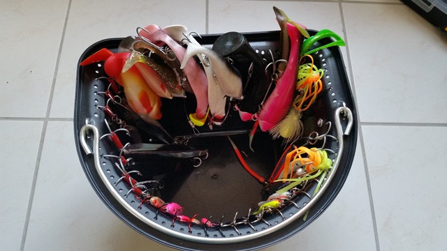 In die obere Kante habe ich rundherum Löcher für die Pilker gebohrt. Die Löcher an der flachen Seite sind Langlöcher, damit auch große Gummifische Platz finden. Mal sehen wie das ganze funktioniert. Getestet wird vom 19.04.2015-30.05.2015 beim Penn Dorschfestival vor Hitra.