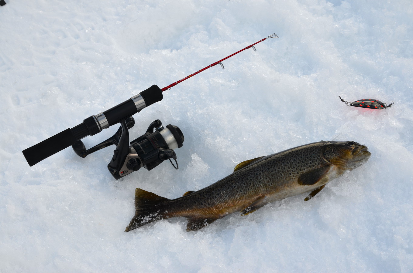 Wir haben mit Saiblings-blinkern und Maden gefischt. Mormyshka haben wir auch ausprobiert, aber leider mit wenig Erfolg.