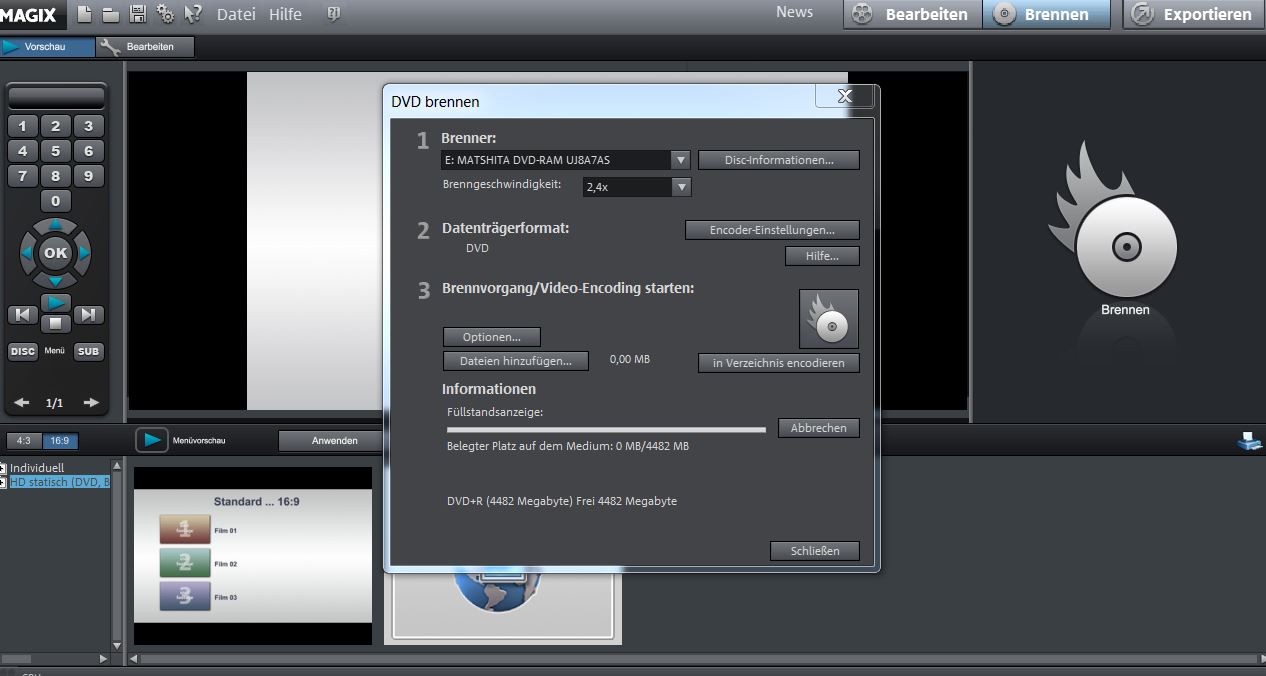 Wenn es das Encoden ggf. durch eine fehlerhaften Eintrag ist, wird das Brennen mit dem Recorder aussteigen oder das Ergebnis ist so groß das es auf keine DVD passt.