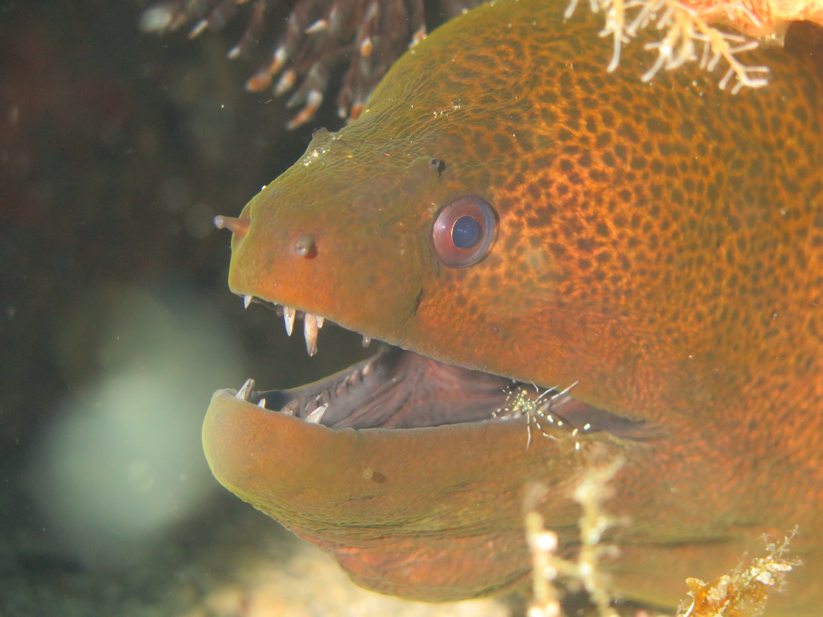 Eine Riesenmuräne mit Putzergarnele hätte ich auch noch in der Auslage ...