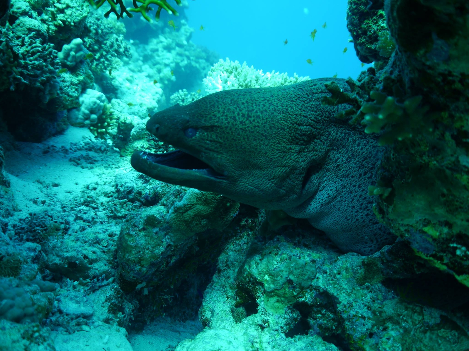 Eine Riesenmuräne mit Putzergarnele hätte ich auch noch in der Auslage ...