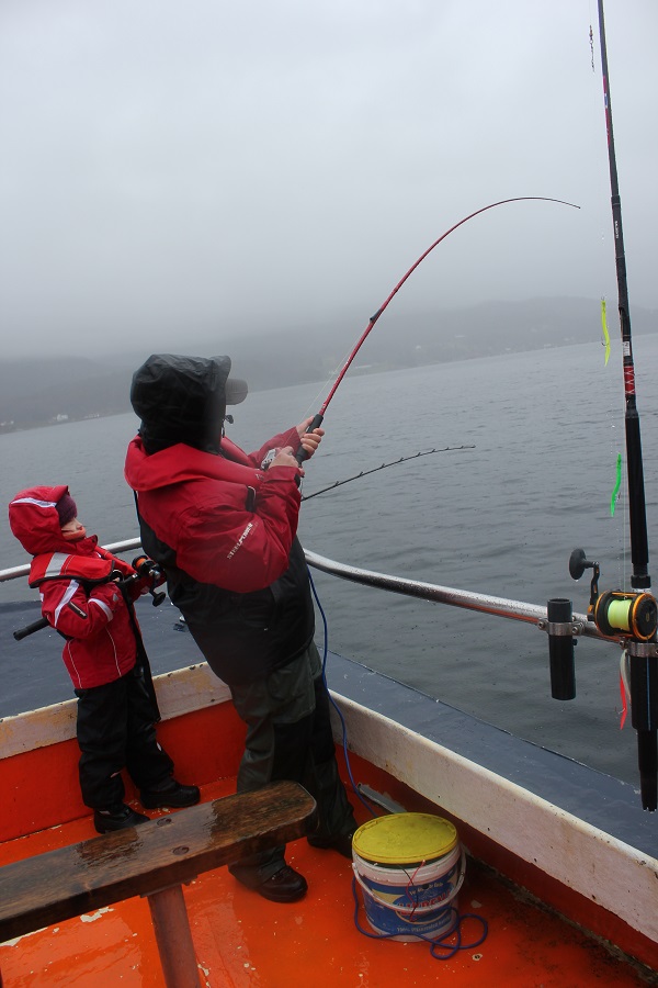 gestern war tote Hose. Heute lief es endlich etwas besser. Wir hatten einen Dorsch von 82 cm und einen Pollack von 61 cm und auch Seelachs. Das Wetter war mehr als bescheiden, endlich weniger Wind aber jede Menge Regen. Die Männer waren schon lange zu Hause in dem Quartier, da waren wir noch draußen