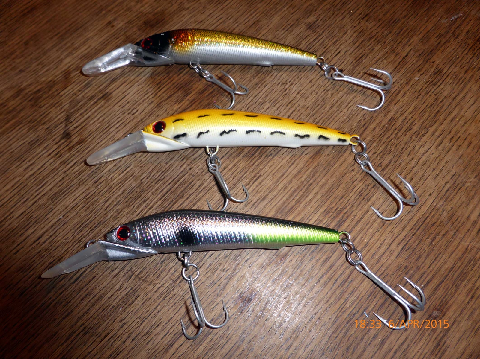 Die oben abgebildeten Wobbler sind 18 cm lang und wiegen ca. 30 g und tauchen bis zu 7 m. Generell gilt, je flacher und größer die Schaufel, umso tiefer laufen die Wobbler, wobei da auch Grenzen gesetzt sind. Bei 9 m ist selbst bei großen Wobblern schluss. Wenn du noch tiefer willst, kannst du ein Blei oder auch einen Sbirolino vorschalten. Um bei kleinen Wobblern weiter werfen zu können hilft ebenso ein vormontierter Sbirolino.