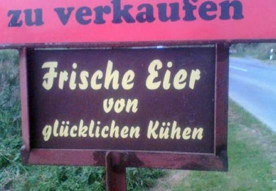 Ich glaube, man muß auch mal die Dinge aus einer anderen Perspektive sehen. Da ja offensichtlich im Hintergrund noch ein rotes Schild zu sehen ist, habe ich mal alles "herumgedreht" und heraus kam: "UNS GRINTERERÖJK LIEF". Und das ist ja wohl ganz einfach. Der das Schild schrieb, er hieß übrigens Grinterereöjk - wie ich nach langen Gockel-Recherchen rausgekriegt habe - hat sein Auto einfach stehengelassen und ist einfach weitergelaufen und wollte dies natürlich auch allen anderen Straßenbenutzern mitteilen, hat aber wohl wegen des Alkoholpegels oder fehlender Lesebrille (wir werden es nie erfahren) die Buchstaben einfach vertauscht. Und Ihr wißt ja: LAUFEN ist zwar das was ich im Moment noch nicht wieder richtig kann, aber soll ausgesprochen gesnud (Verzeihung) sein. Oder etwa nicht ? ![]()
