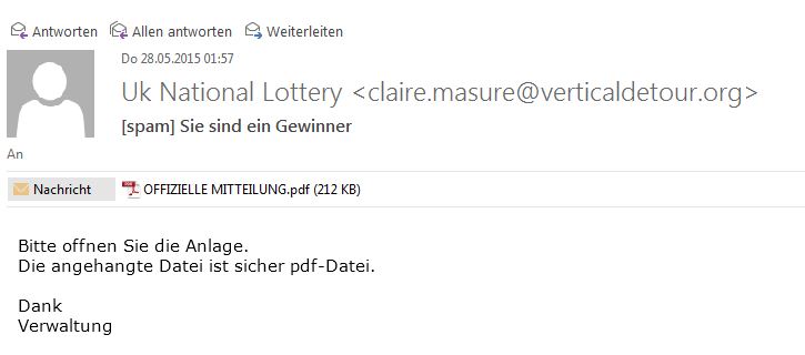 Allein das Öffnen der angehängten (vermeintlichen) pdf-Dokumente reicht aus, um seinen Rechner zu verseuchen.