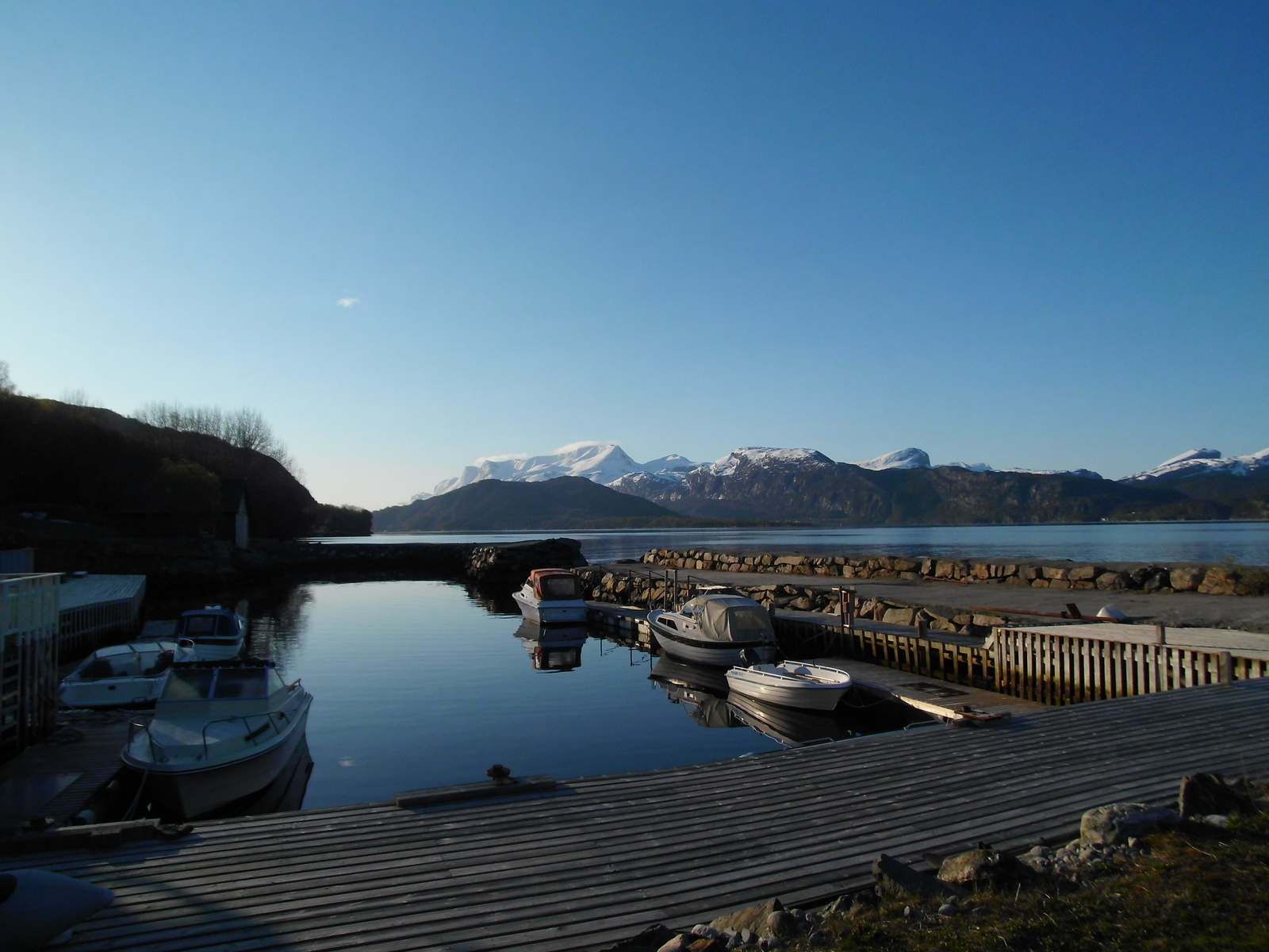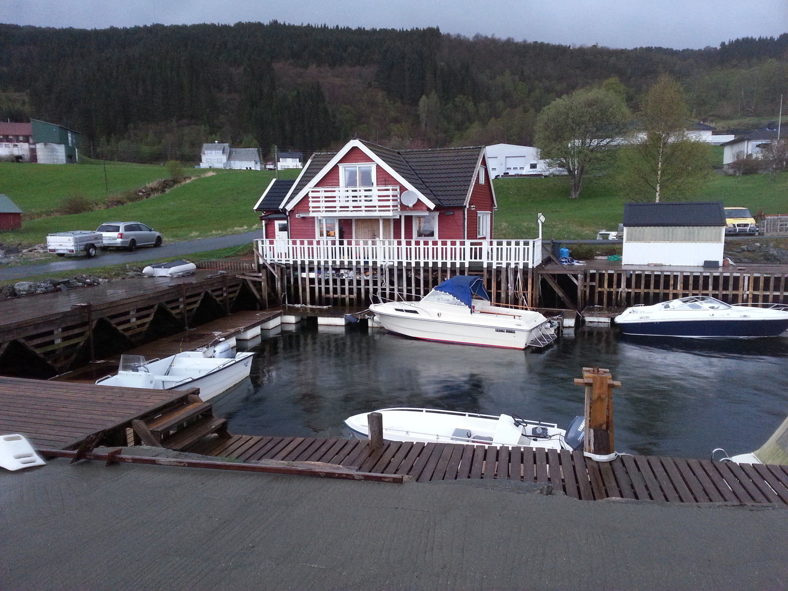 Die Hinfahrt stand schon nach einer Stunde unter keinem guten Zeichen. Wir hatten drei Stunden Reserve bis zur Fähre eingeplant.Die waren sch nach 100 km. aufgebraucht. 3 Stunden Stillstand auf der A1. Mit Auto und Hänger nach Hirthals wir mit normalen Tempo nicht gehen. Also durft es ein bisschen Schneller sein. Hamburg hinter uns da der nächste Stillstand 30 Minuten.Also schnell weiter und noch ein bisschen schneller.Tanken in Dänemark wie bei der Formel 1. Ergebniss. 20 Minuten vor der Abfahrt standen wir am Anleger.Alles gut ruhige Überfahrt und dann gemütlich zum Ziel.13 Uhr Ankunft und mein Sohn und ich konnten nur noch Staunen bei der Aussicht. Haus und Fjord lagen vor uns genau wie beschrieben.Auspacken, Bett beziehen Kaffe kochen und dann???