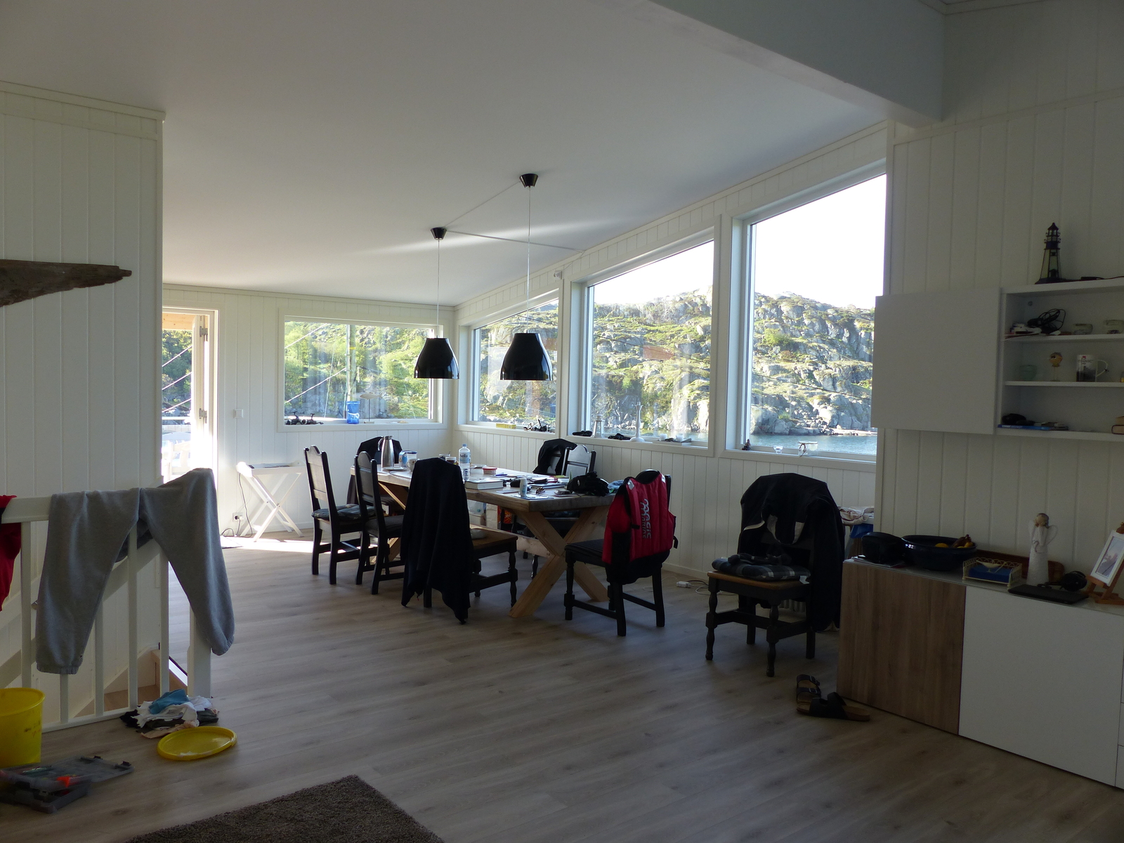 Das Haus liegt direkt am Wasser und ist in einen Felsen hineingebaut. Es wurde 2014 komplett renoviert und wurde auch komplett neu eingerichtet. Der Vermieter und seine Mutter empfingen uns und zeigten uns die Wohnung. Wir hatten die obere Wohnung(die etwas teurer ist) gebucht, was ich aber auch jedem anderen wärmsten empfehlen würde. Sie ist deutlich größer, lässt viel Licht durch eine Große Fensterfront in die Wohnung und hat einen schönen Blick direkt auf den Fjord. Ärgerlich ist nur die Treppe mitten in der Wohnung, die zur unten gelegenen Wohnung führt, da unten lediglich eine kleine Zimmertür ist, die die beiden Wohnung trennt, bekommt man sicherlich viel voneinander mit, wenn beide Wohnungen gleichzeitig belegt sind. Wir hatten das Glück, dass die andere Wohnung nicht vermietet war.