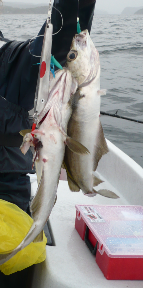 Wir staunten nicht schlecht, als wir feststellten, dass bei 30 Meter Wassertiefe plötzlich zwei Leng den Köder nahmen. Sie waren auch gar nicht klein 65 und 70 Zentimeter. Als Topköder haben sich hier wiedermal garnierte Pilker in gelb/orange oder blau/silber bewährt. Ich probierte jedoch wieder mit der Spinnrute mein Glück und konnte einige Köder überlisten. Diese Angellei macht mir einfach deutlich mehr Spaß, als das Angeln mit 300g Pilkern auf Leng.