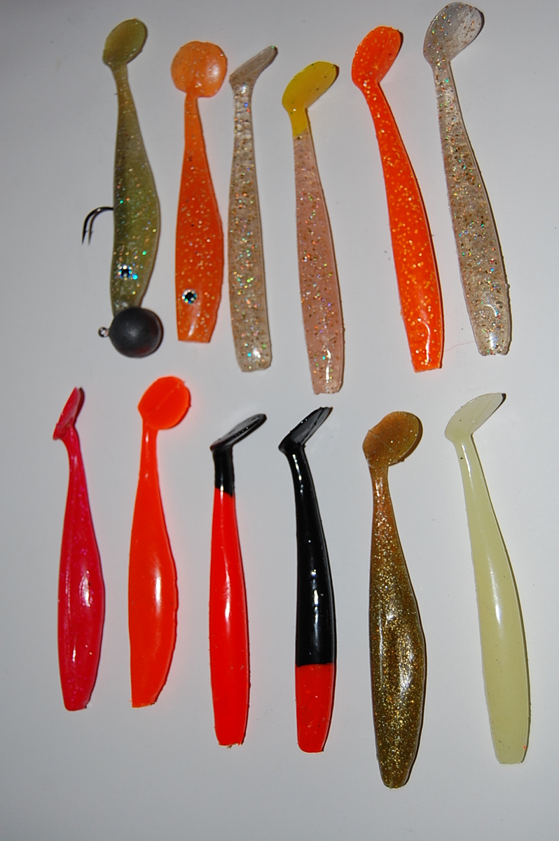 welche Gummifische ich mir jetzt gebaut habe. Die sind um 12 cm lang und Bleiköpfe habe ich bis 110g.