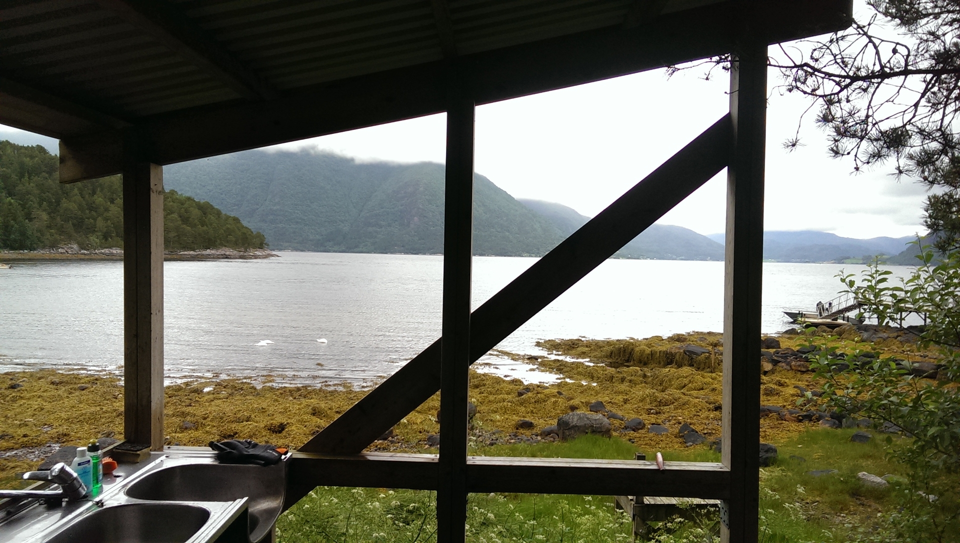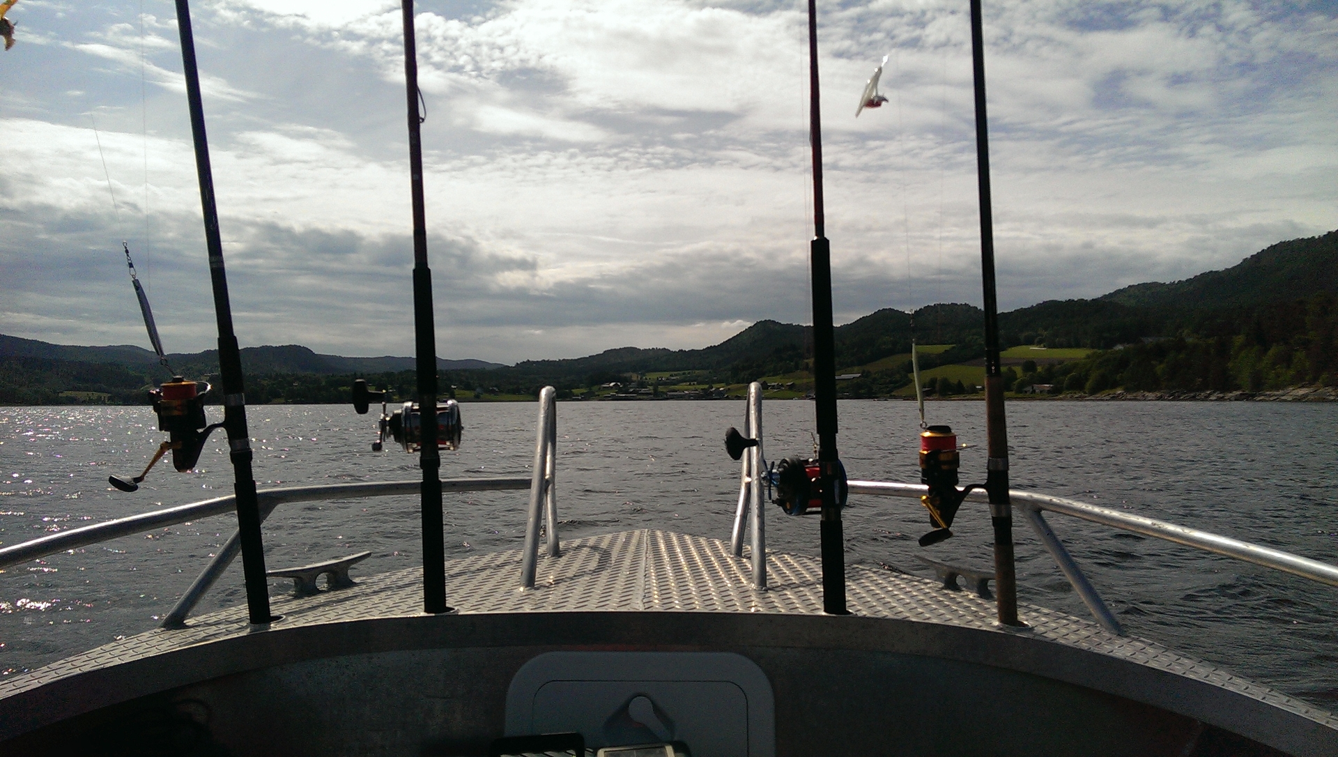 Nachdem wir uns häuslich eingerichtet hatten, war noch genug Zeit und das Wetter gut um die erste Ausfahrt zu machen. Wir haben uns erst einmal mit dem Boot vertraut gemacht und sind dann richtung Askardfjord gefahren. Da haben wir auch dann eine Runde mit leichtem Geschirr geangelt und auch direkt ein paar Heringe, Makrelen und einen Dorsch gefangen. Für den ersten Tag waren wir recht zufrieden.