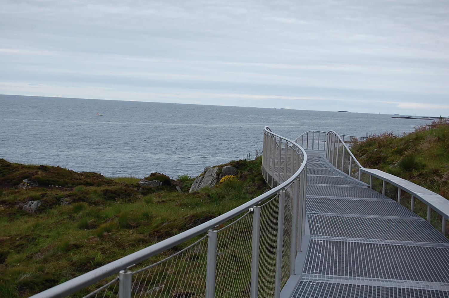 die Metallwanderwege sind neu auf den Inseln des Atlantikweges gemacht worden und alles aus bestem Nirostamaterial auch ein Anglersteg an einer anderen Brücke. Das Geländer ist so gebaut, dass man dort, wo es möglich ist, auch rüber gehen kann, deshalb geht das Geländer so auf und ab.