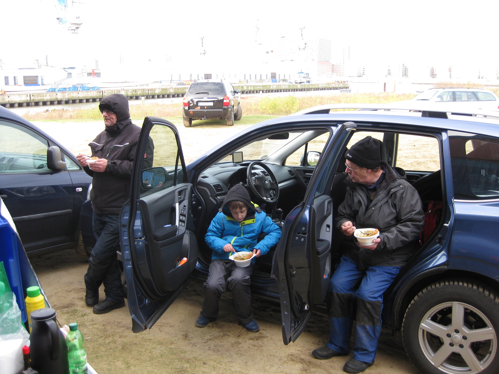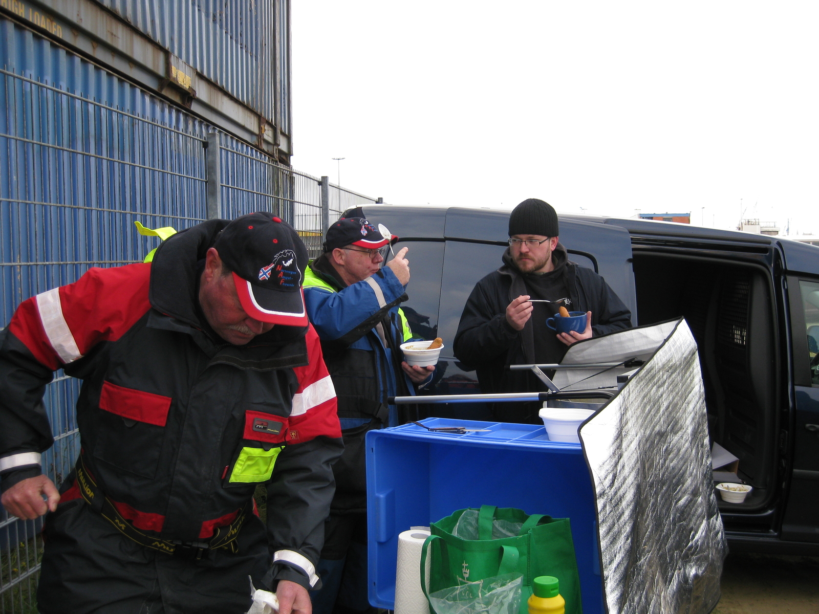 Der Tag heute hatte es insich heute morgen um 5Uhr hoch dann los und die Suppe holen und weiter nach HH zu Hoddel kurz noch einen Kaffee und weiter zum Hafen wo alle anderen schon warteten es wurde sich wie immer herzlich begrüßt, und was auch schön war es waren ein paar neue Gesichter da. Zum angeln bin ich nicht groß gekommen Angel fertig und ab ins Wasser damit und dann rief auch schon die Arbeit denn ich hatte ja die Suppe mit, mit Stefan und Hoddel erst einmal mal eine Wind geschützte Ecke mit den Autos gebaut und dann gings ans Suppe heiß machen. Die so wie ich zu hören bekam gut ankam.