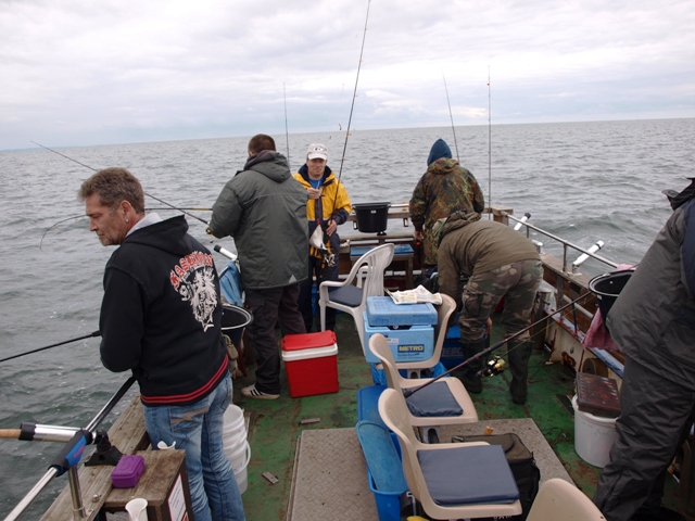 die ersten 2-3 Stunden ging so gut wie nischt,Wind und richtig starke Strömung,verschiedene Stellen angefahren ohne Erfolg,als der Wind sich etwas legte wieder zurück auf die 2 Stelle und da ging plötzlich die Post ab.abgesehen von circa 15 die wir zu klein fanden wurden es genau 100 die die die Reise in die Pfanne antreten durften.Hier noch ein paar Eindrücke.2017 steht schon fest,gleiche Mannschaft.