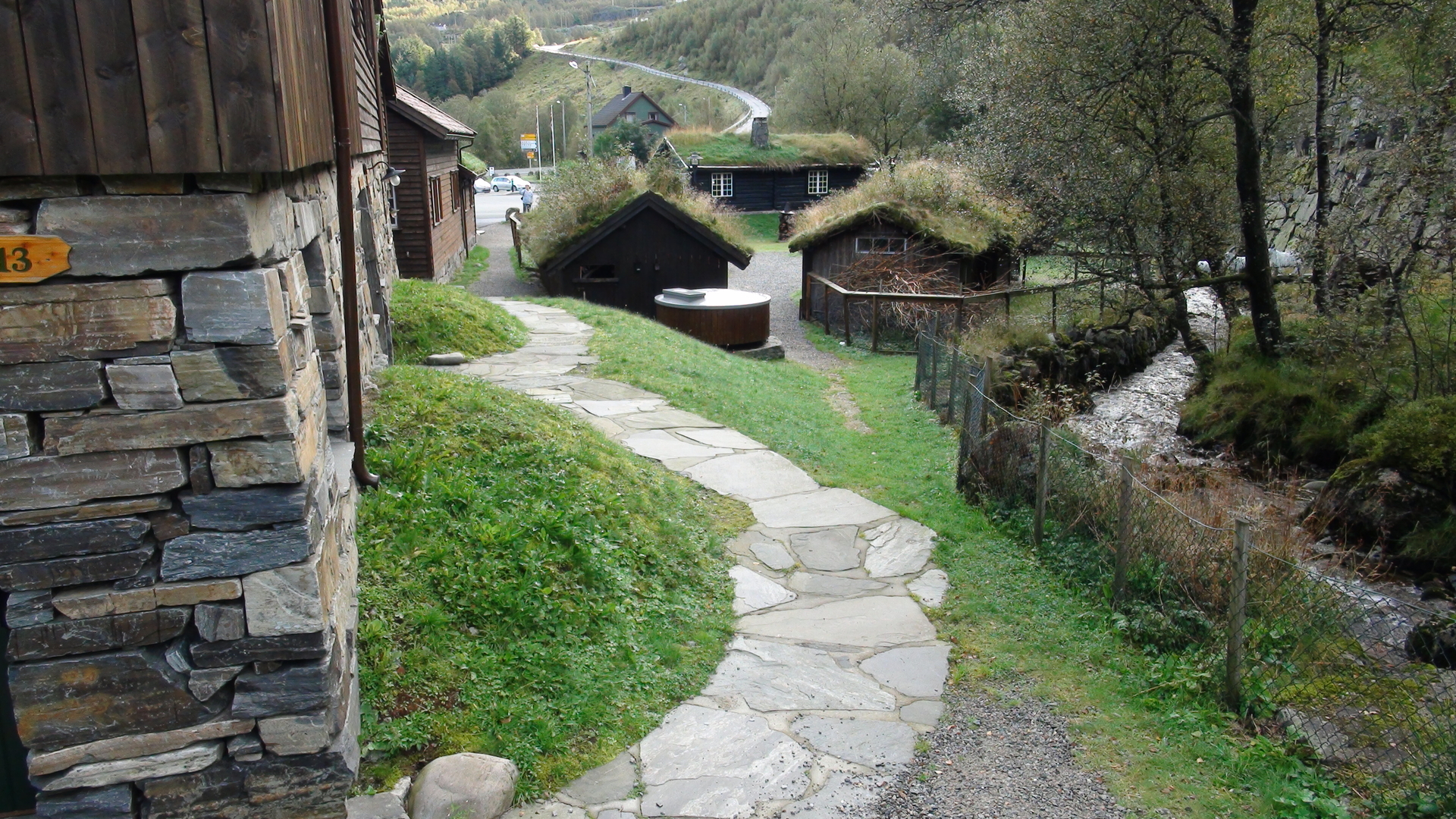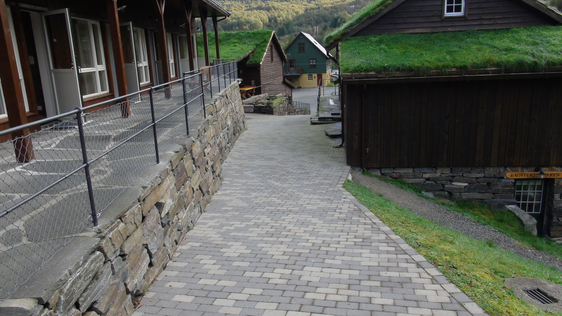 Das Byrkjedalstunet ist auch ein kleines, schnuckeliges Hotel mit 31 Zimmern, gelegen in einer traumhaften Landschaft. Man ist umgeben von hohen Bergen, hört das Plätschern das Baches, Vogelgezwitscher und die Ziegen grasen auf den Dächern.Unterwegs von der Gloppedalsura zum Byrkjedalstunet