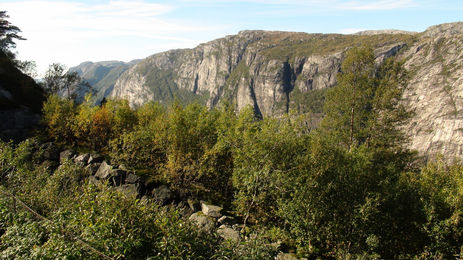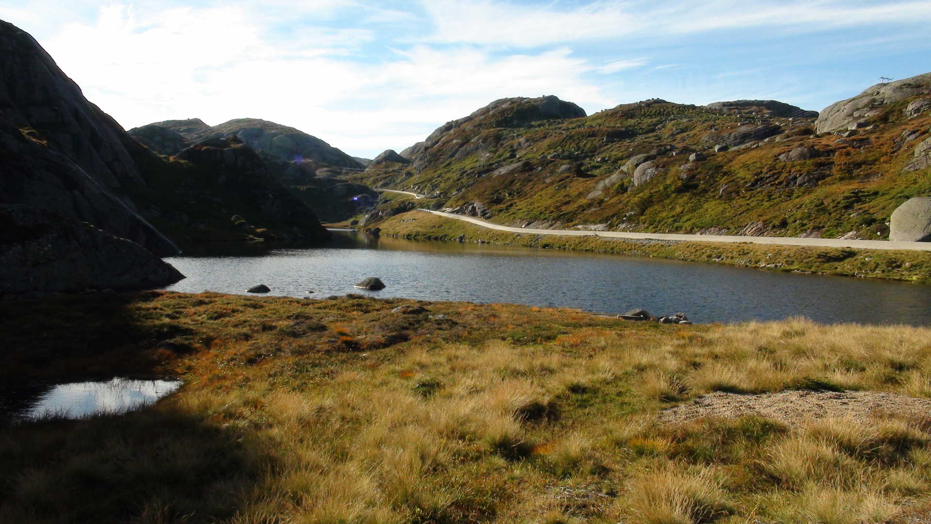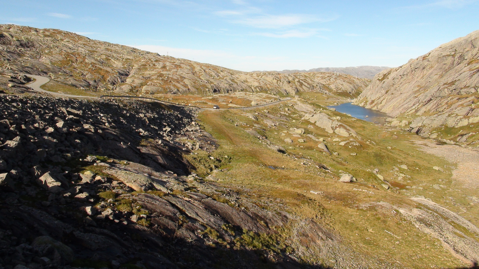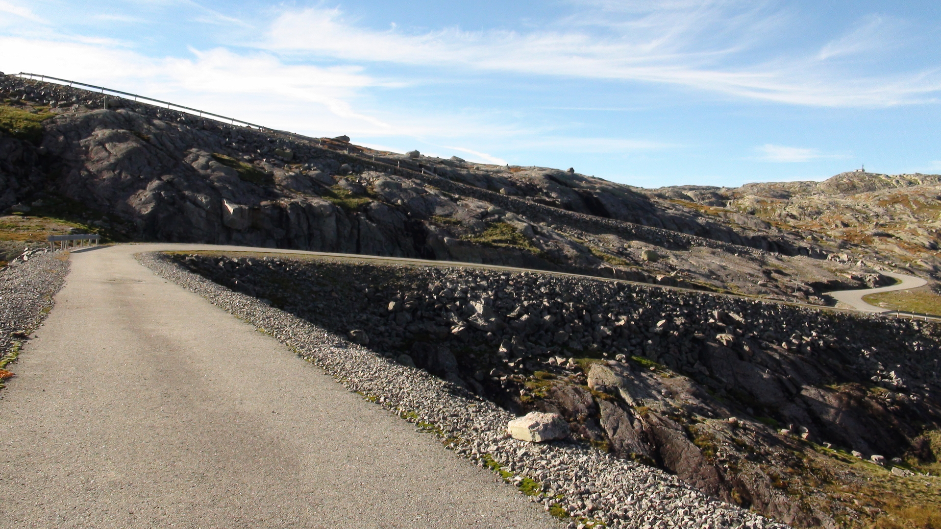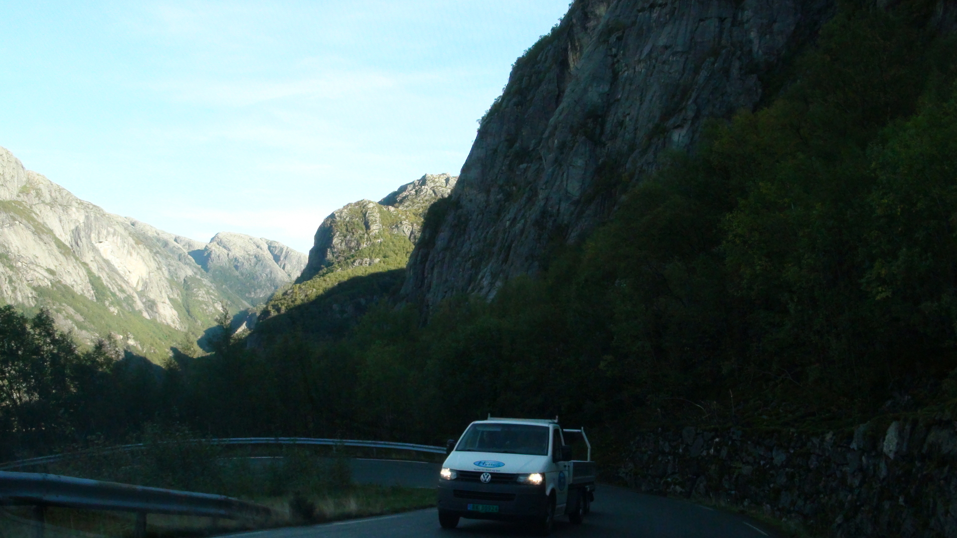 Der Parkplatz am Øygardsstøl ist gebührenpflichtig. Und trotz eines Parkscheinautomaten sitzt dort ein junger, aber auch netter, sonnengebräunter Mann vom Parkservice und wacht darüber, dass auch alles seine Ordnung hat. Wir bekommen von ihm die Genehmigung, nicht zahlen zu müssen. Er sagte uns auch, dass der Aussichtspunkt Øygardsstøl schon geschlossen ist. Die Saison ist vorbei! Schade, so bleibt uns u.a. der Blick auf den Lysefjord und die Serpentinenstraße verwehrt. Aber wir werden sie ja gleich fahren!! Außerdem kennen wir den Blick ja schon, da wir 2007 schon einmal hier waren. Trotzdem wäre es schön gewesen!