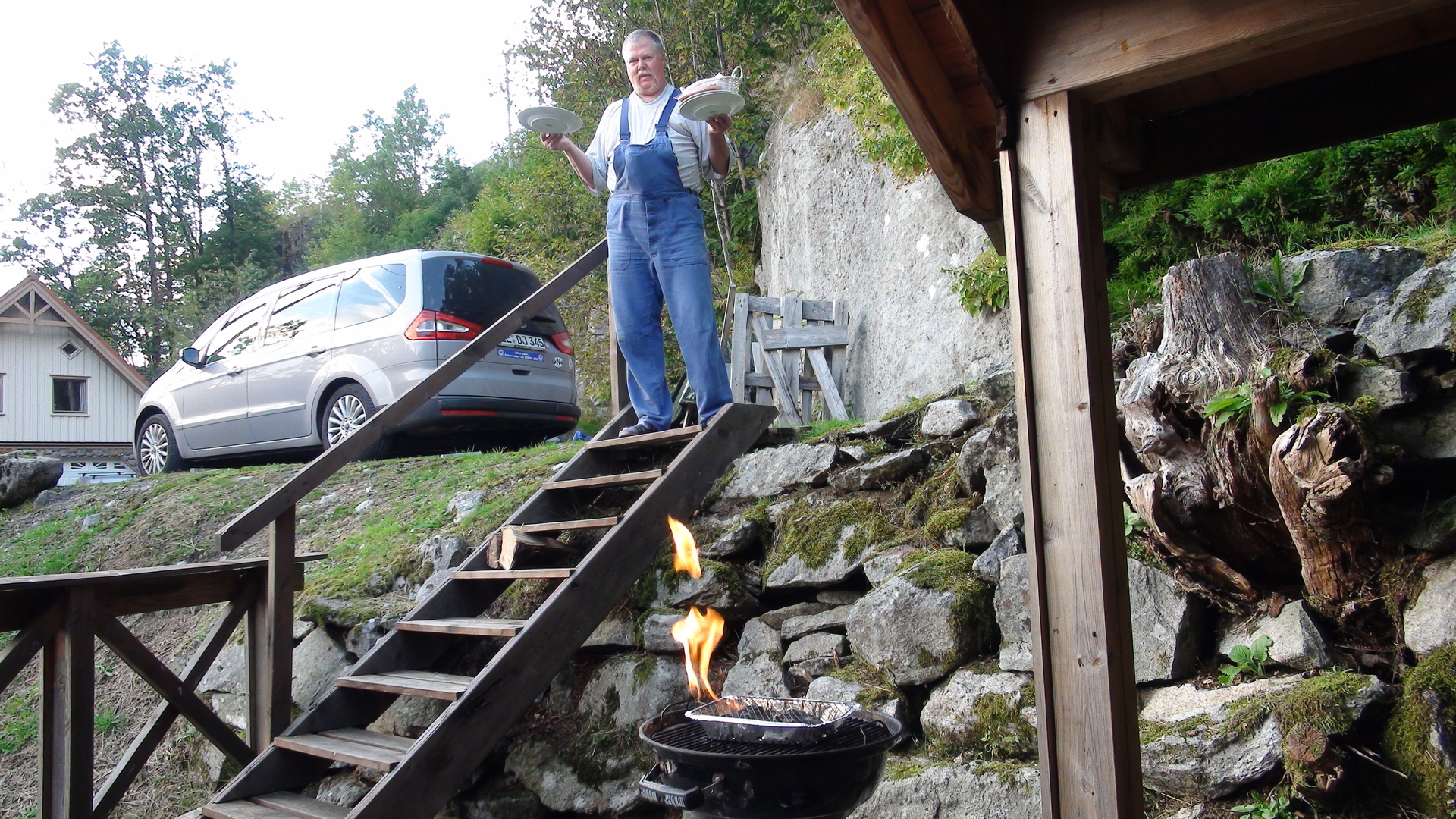 teilweise über Serpentinen an der Straße Richtung Kvinesdal heraus. Die Hütte lag neben dem Haus
