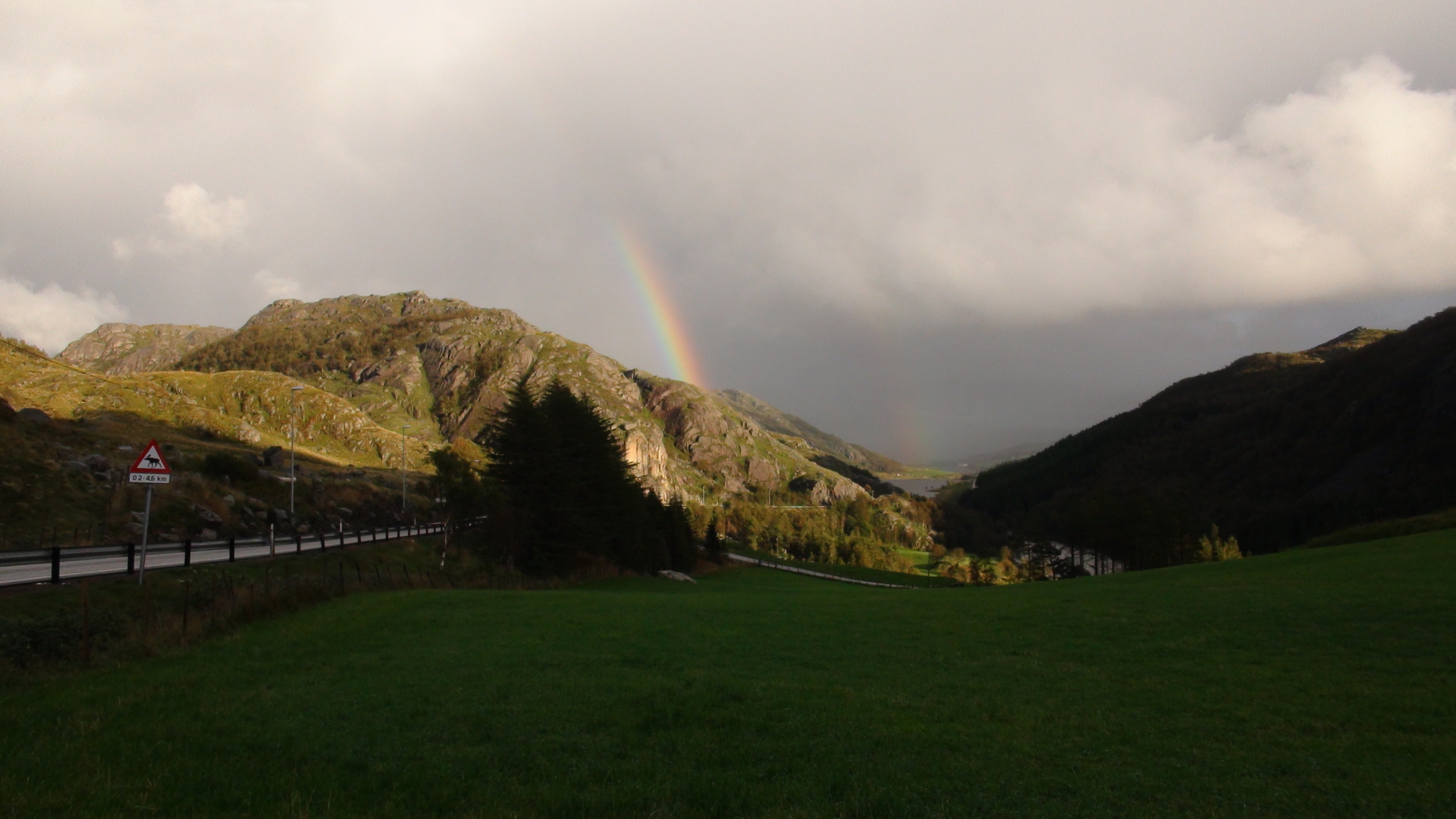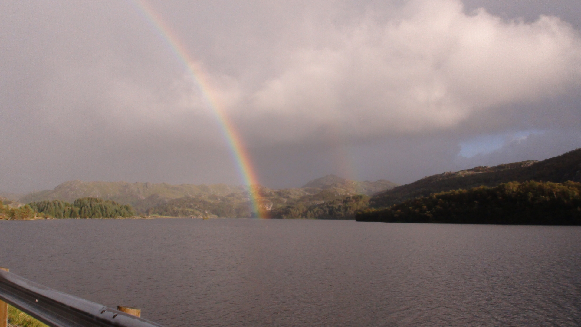 Auf der RV504 gibt es viele ausgeschilderte Angelseen. Wir fahren auf eine dicke Regenfront zu und immer wieder tauchen neue Regenbögen auf. An diesem Abend haben wir, auf dem Nachhauseweg, 5 gezählt. Über die E39 ging es wieder nach Feda zurück.