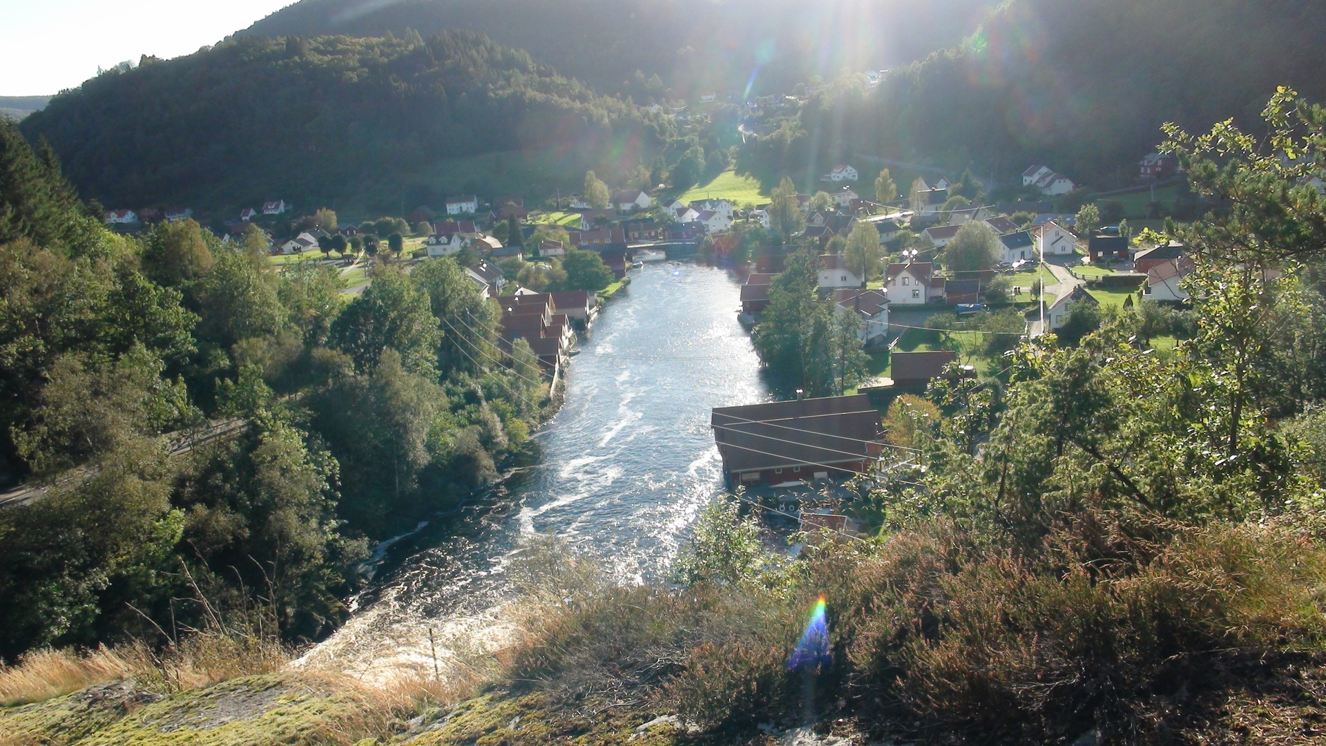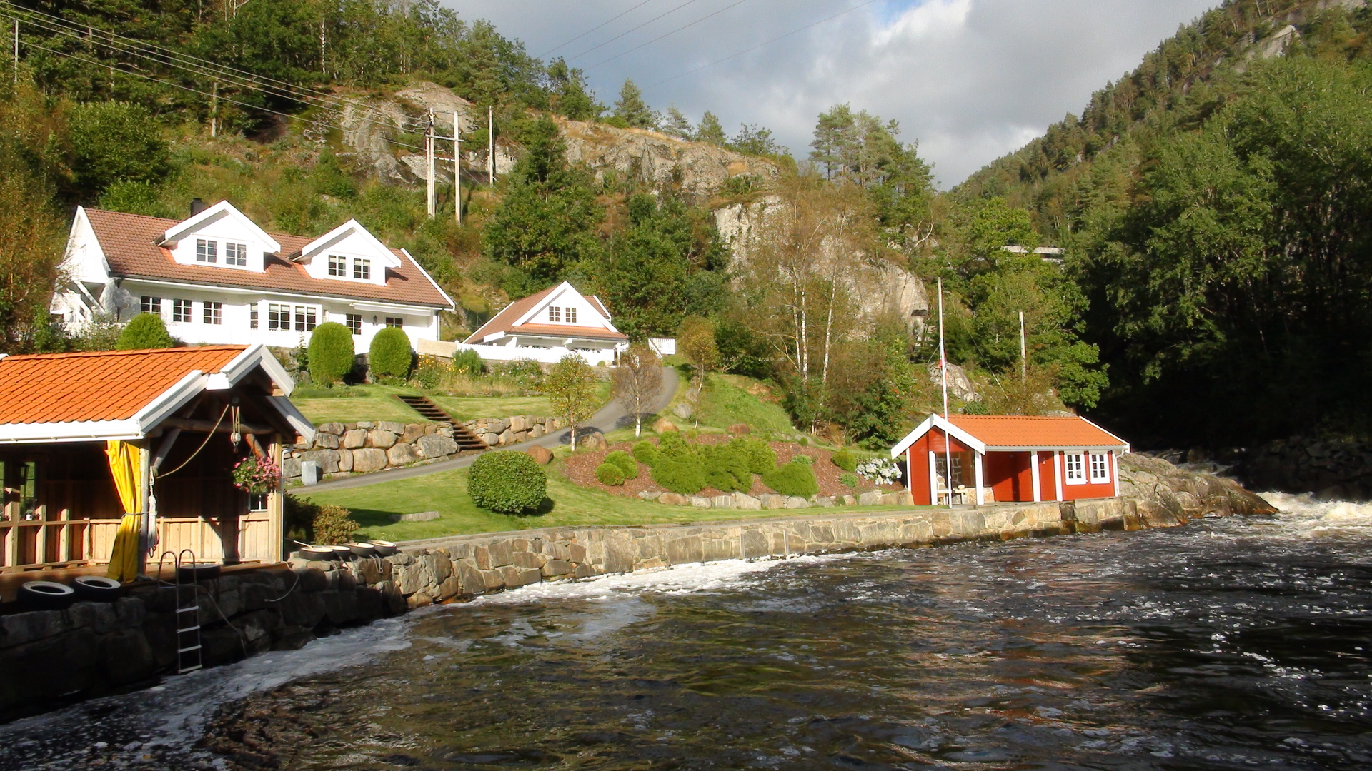 Es herrscht Nebel über dem Fjord. Nein, eine Wolke deckt den Fjord zu. Sieht schön aus, vom Haus hier oben. Oben ist der blaue Himmel zu sehen und die Sonne scheint dazu und übern Fjord ist diese Wolke draufgelegt. Aber es zieht sich nochmal richtig zu und wir können Feda nicht mehr sehen. Doch schon bald ist wieder bestes Wetter.
