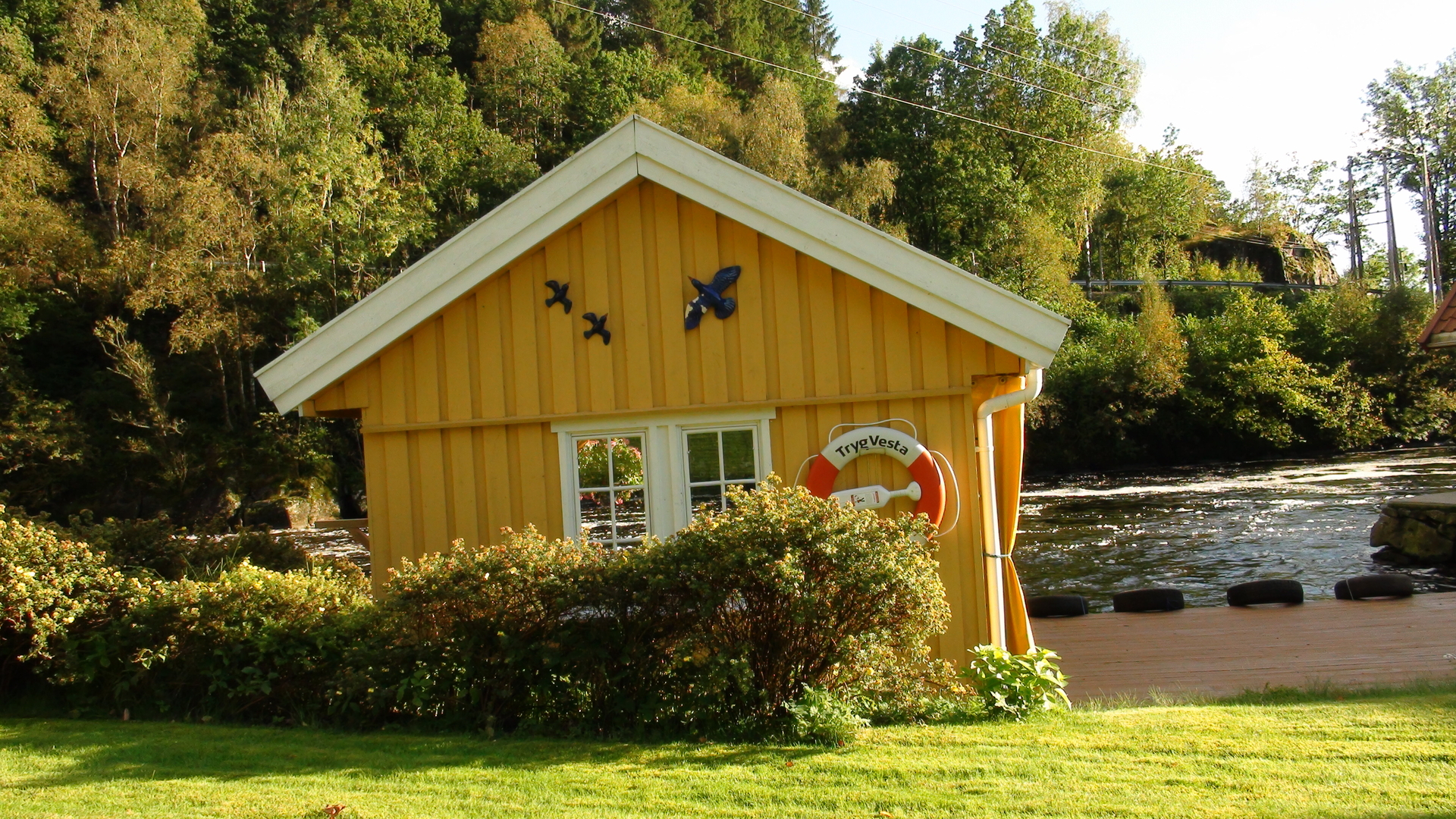 In der Sonne ist es so heiß, man könnte meinen, es ist Hochsommer hier. Da es Wochenende und so schön ist, sind etliche Boote unterwegs. Ab und an kommen einige auf dem Feda-Fluß entlang.