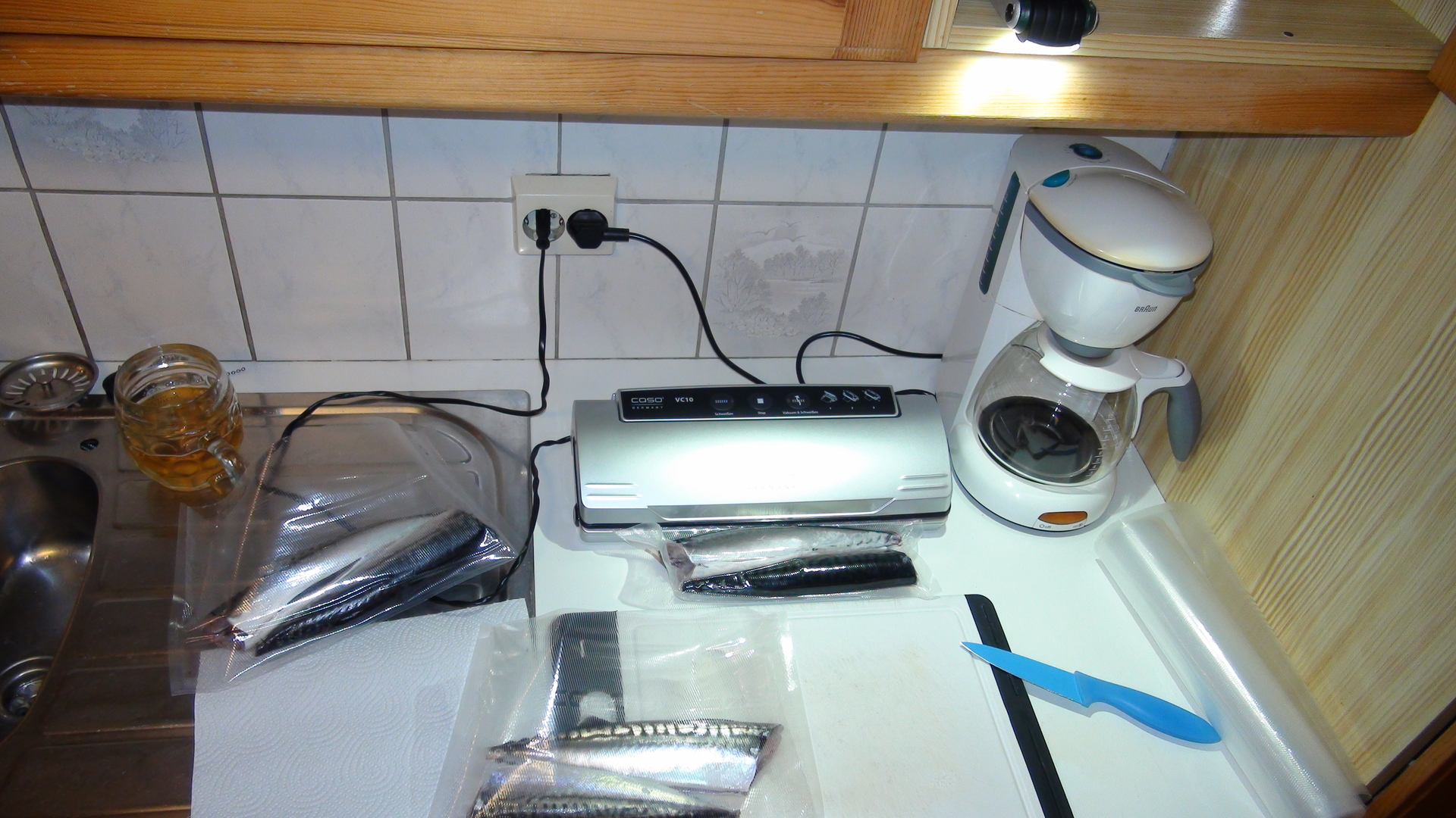 Auf Höhe Binesflua hatte ich einen Köhler in Küchengröße gehakt. Insgesamt hatte ich an diesem Tag mindestens 15 Makrelen wieder zurückgesetzt, die waren einfach zu klein. Aber die Makrelen gab es hier reichlich.