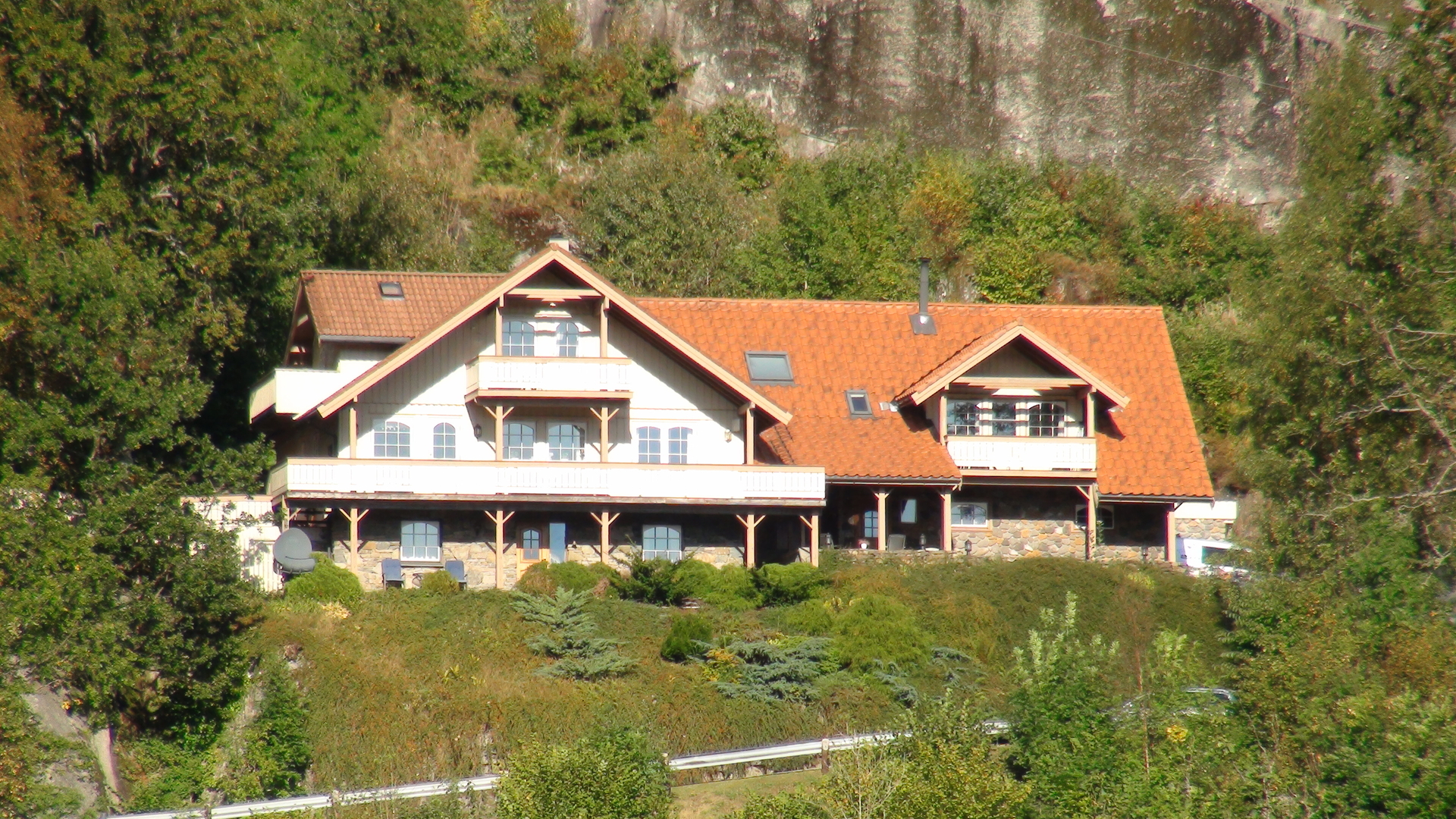 teilweise über Serpentinen an der Straße Richtung Kvinesdal heraus. Die Hütte lag neben dem Haus