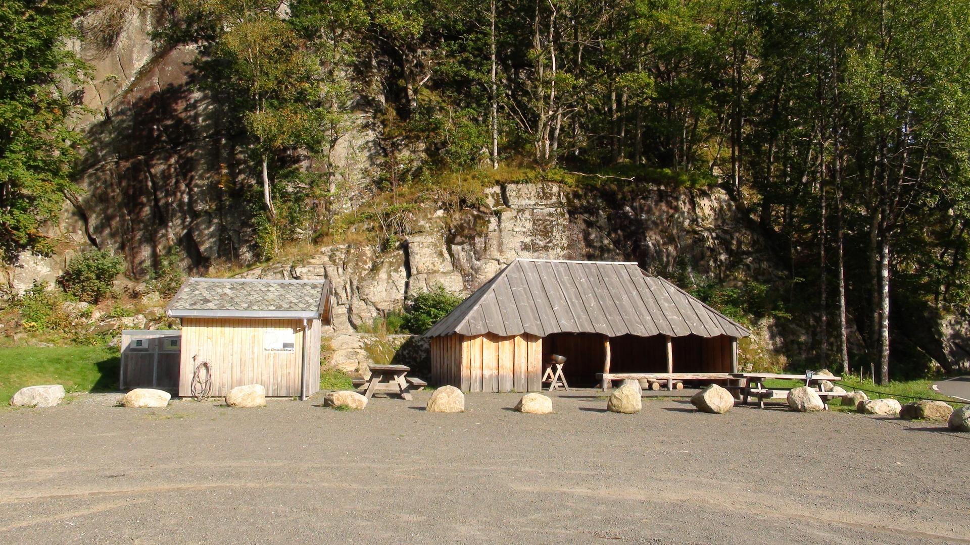 ......öffentlichen Grillplatz plus Toilettenhäuschen nebenan. Man muss immer staunen, wie ordentlich und sauber solche Plätze in Norwegen sind. ......