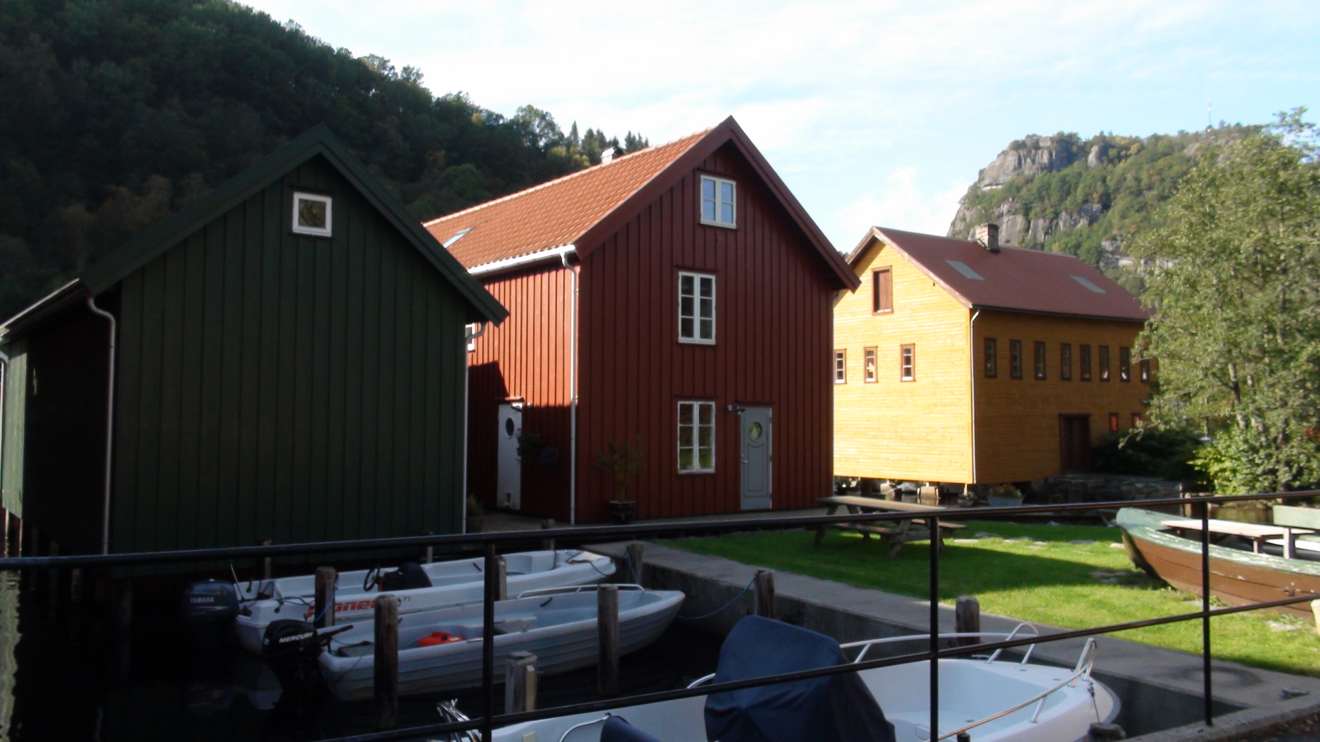 Kurz umgesehen haben wir uns auch an den Bootshäusern, die direkt am Feda-Fluß liegen und als Ferienhäuser vermietet werden. Der ein oder andere wird sie sicher kennen. Wir zum Beispiel.