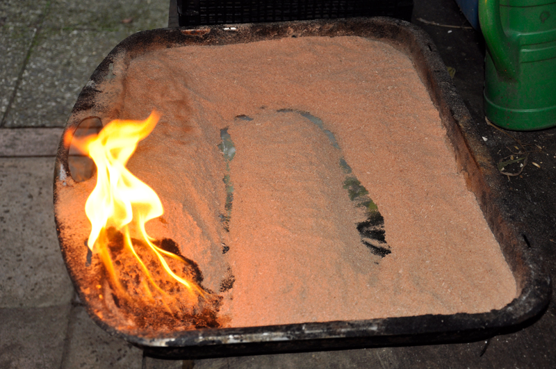 ich habe da nicht viel gebastelt. Ein ausrangiertes Backblech mit genügend Späne befüllt