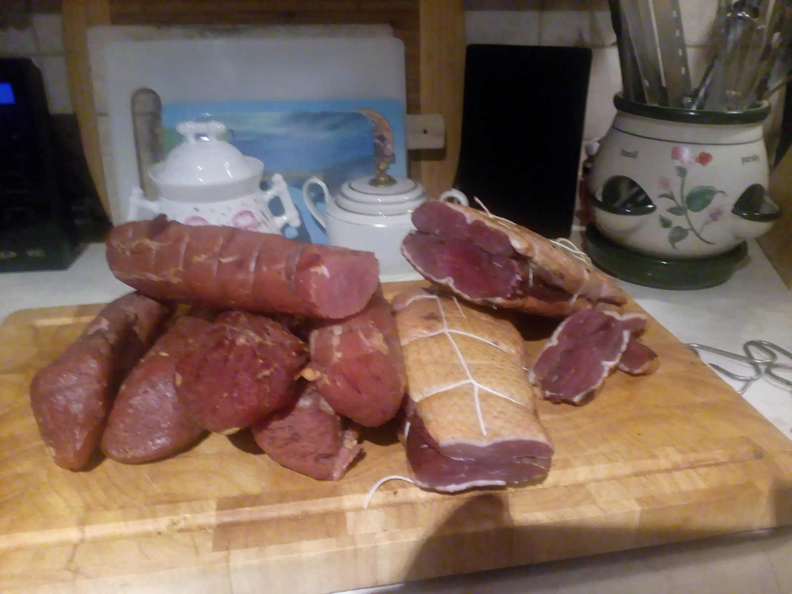 Habe gerade 12 kg fertigen Nuss- und Lachsschinken portioniert und vakuumiert....ab in den Frost! LC:)