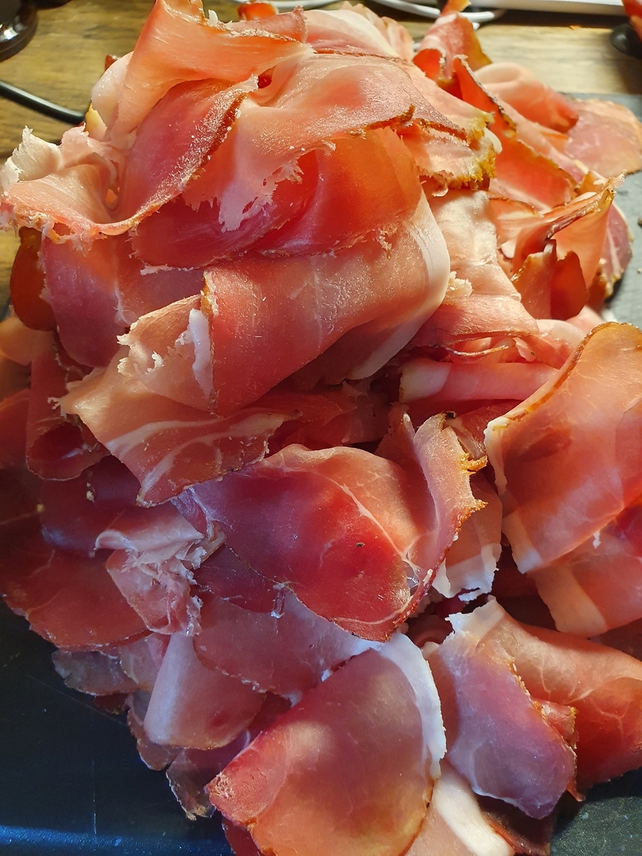 Ich schweiße den Schinken vorzugsweise am Stück ein.